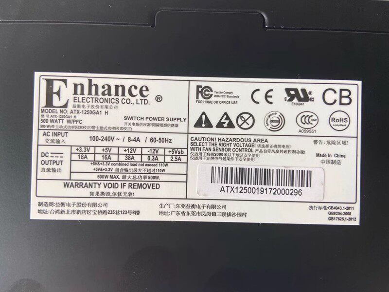 全新益衡Enhance 额定500W ATX-1250AG1 台式机 宽幅 工控机 电源 - 品牌电脑电源城