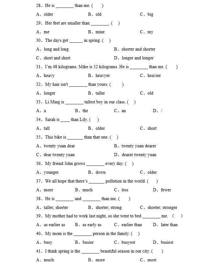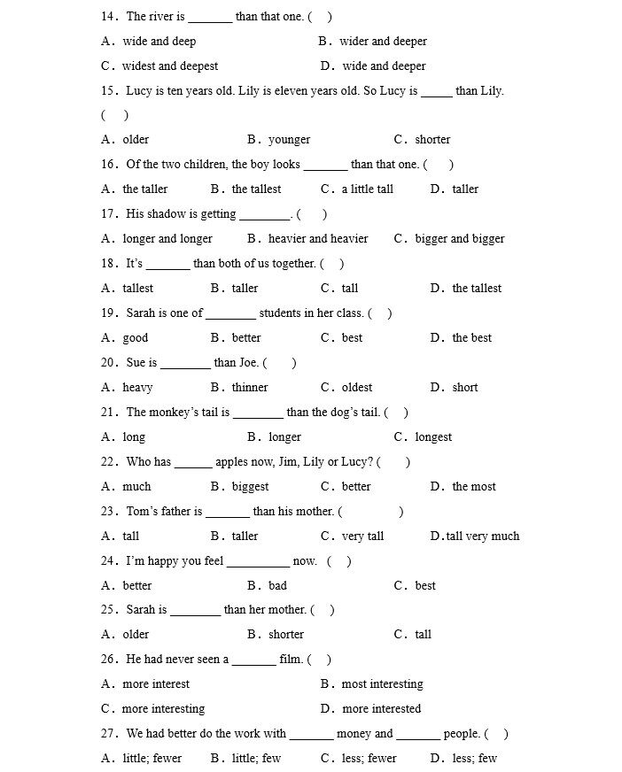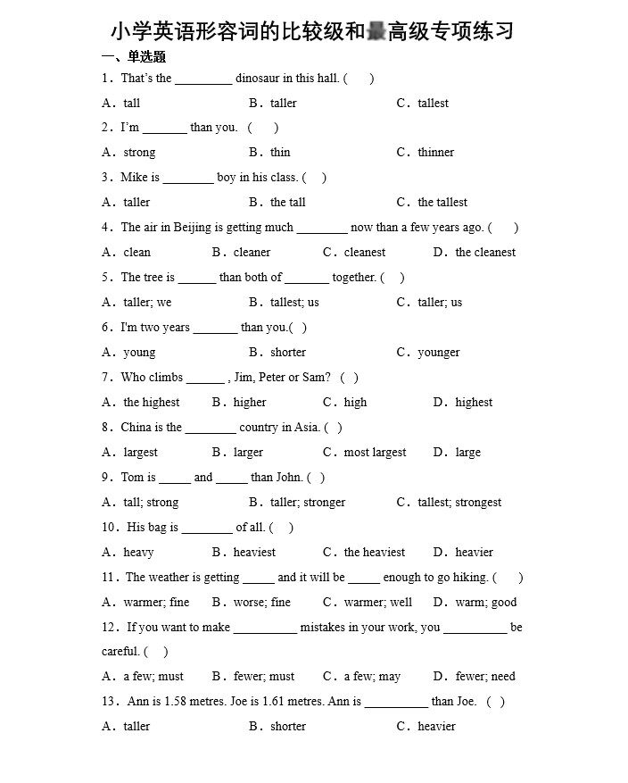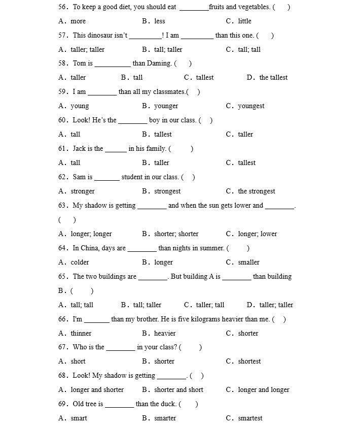 您的位置:安康生态农业开发平台  >   >  小学英语四五六年级形容词的比较级和最高级练习题专项训练习题本