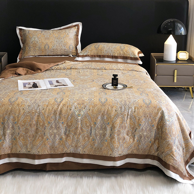 新品印花凉感天丝锦夏凉被四件套冰丝夏季欧式空调被可水洗薄被子 - 摩祺家纺