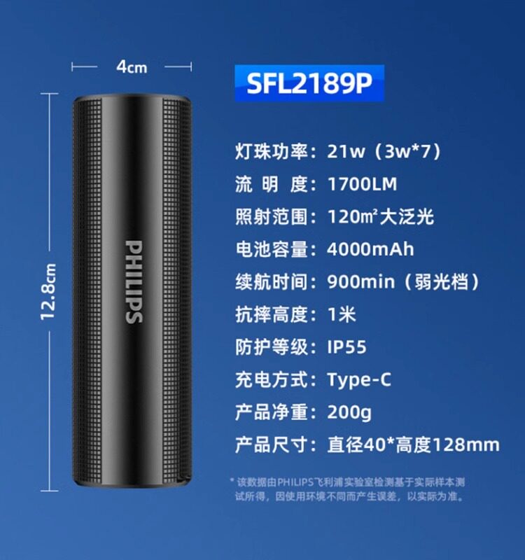 飞利浦手电筒大广角超亮户外小型便携充电家用战术工作灯SFL2189P - 正品灯具照明店