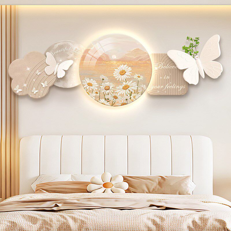 新款奶油风卧室床头挂画房间背景墙led氛围灯发光装饰画天鹅壁画 - 润达好物精品店的小店9