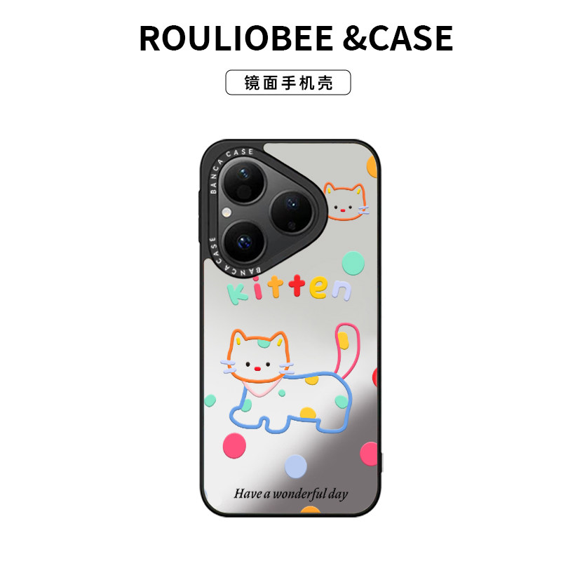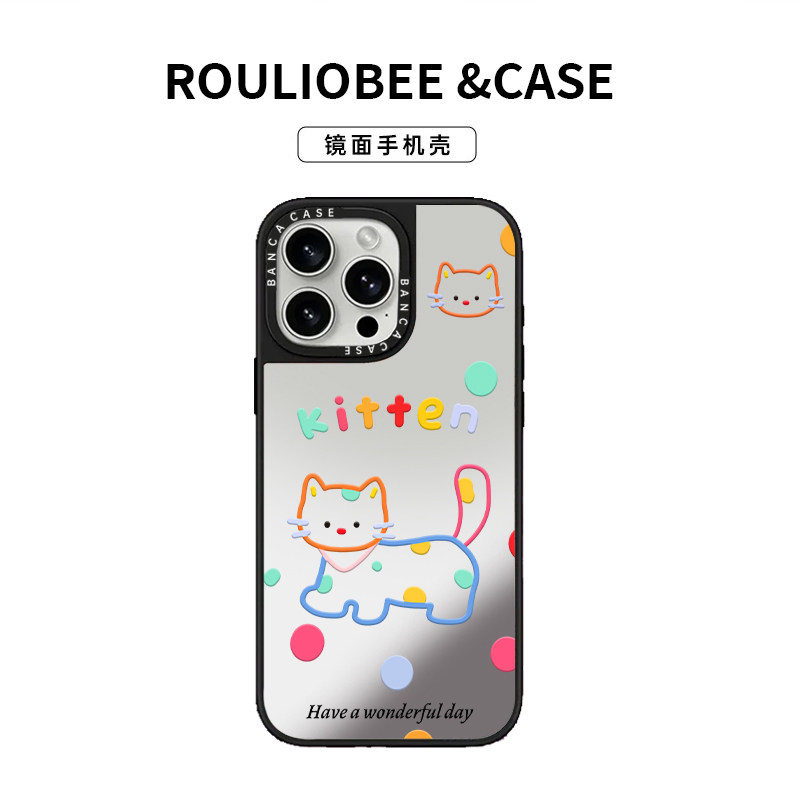 彩色波点猫咪适用iPhone16promax手机壳13苹果15卡通12华为p70nova14小米17pro荣耀300潮牌镜面vivoppo红米14 - 啵啵啵工作室