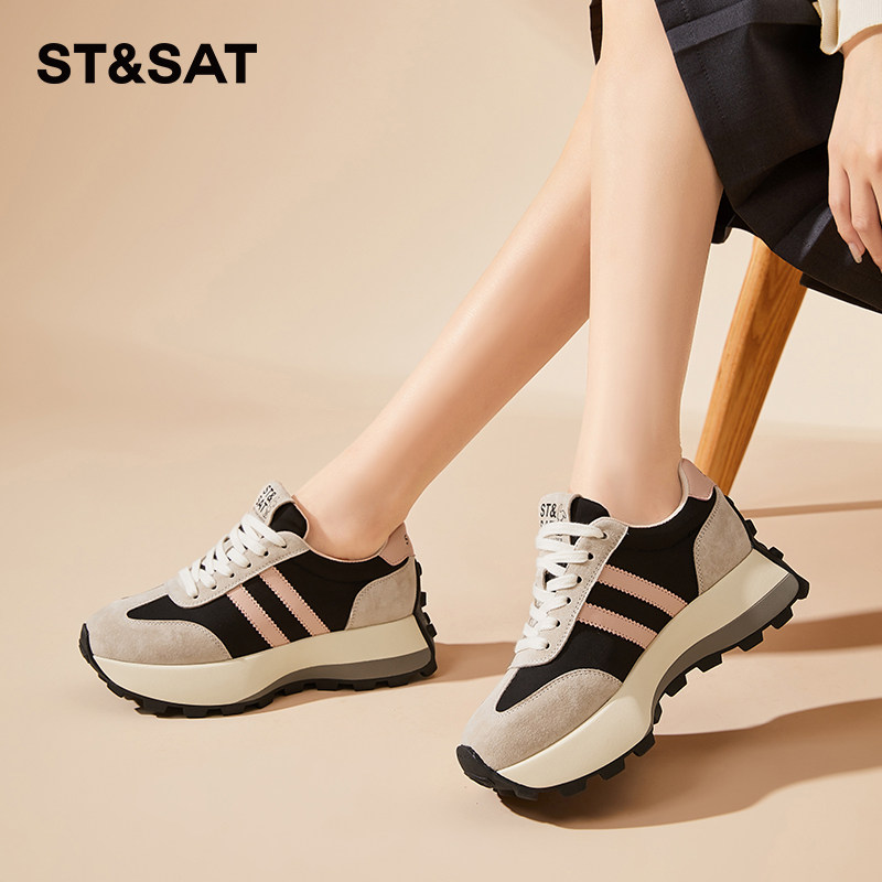 星期六复古黑白拼色时尚休闲鞋2026年春季新款厚底女鞋潮流运动鞋 - STSAT星期六民创专卖店