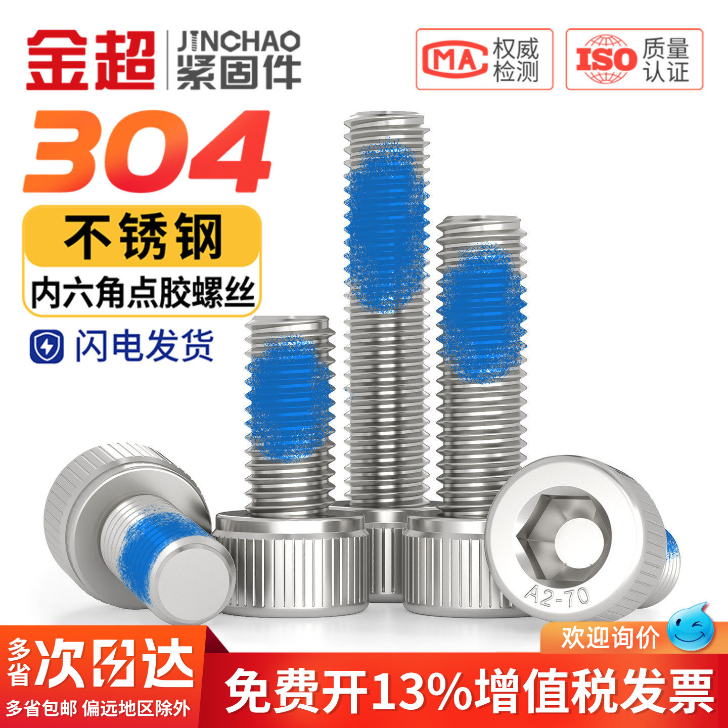 304不锈钢圆柱头内六角点胶螺丝杯头涂胶防松防滑奈落螺钉M3M5M6 - 金超官方旗舰店
