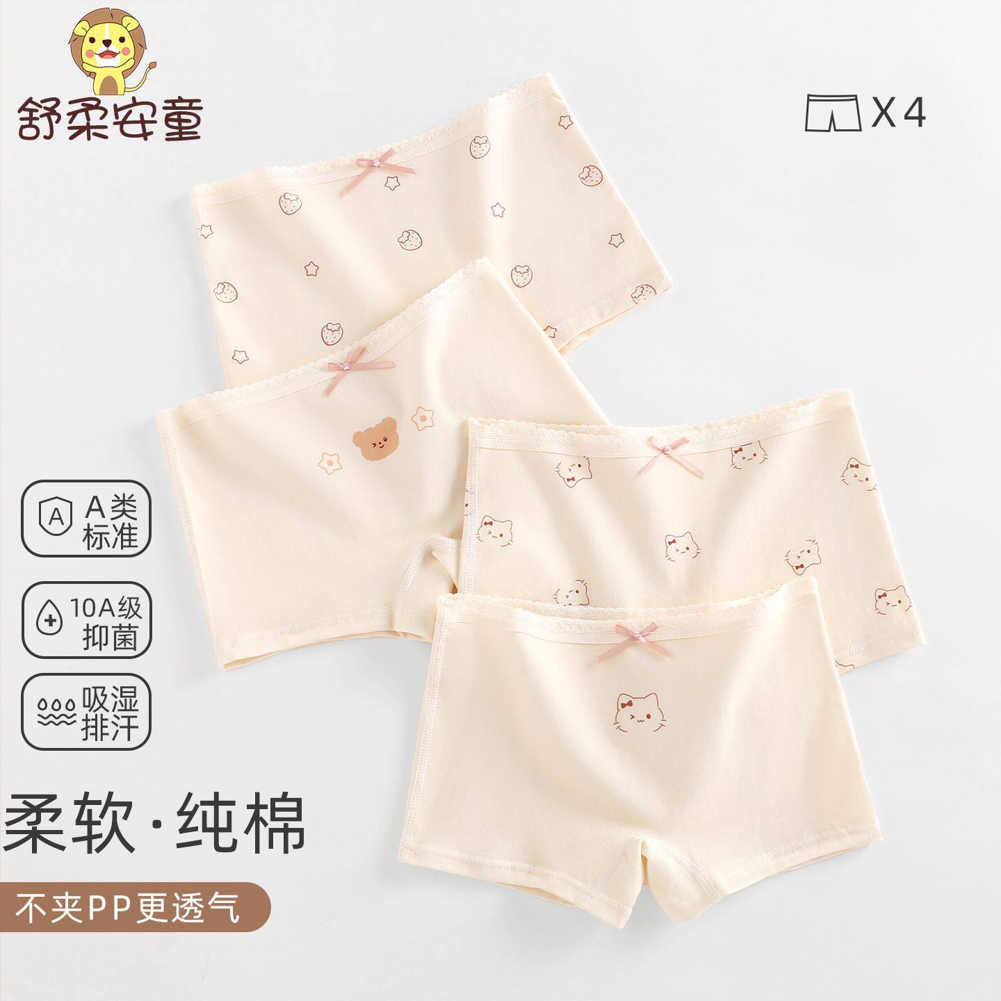 儿童a类纯棉内裤中大童四角裤不夹屁屁平角小女孩10A抗菌宝宝底裤 - 舒柔安童旗舰店