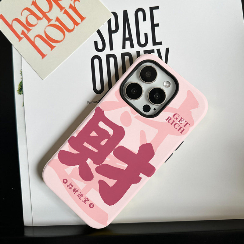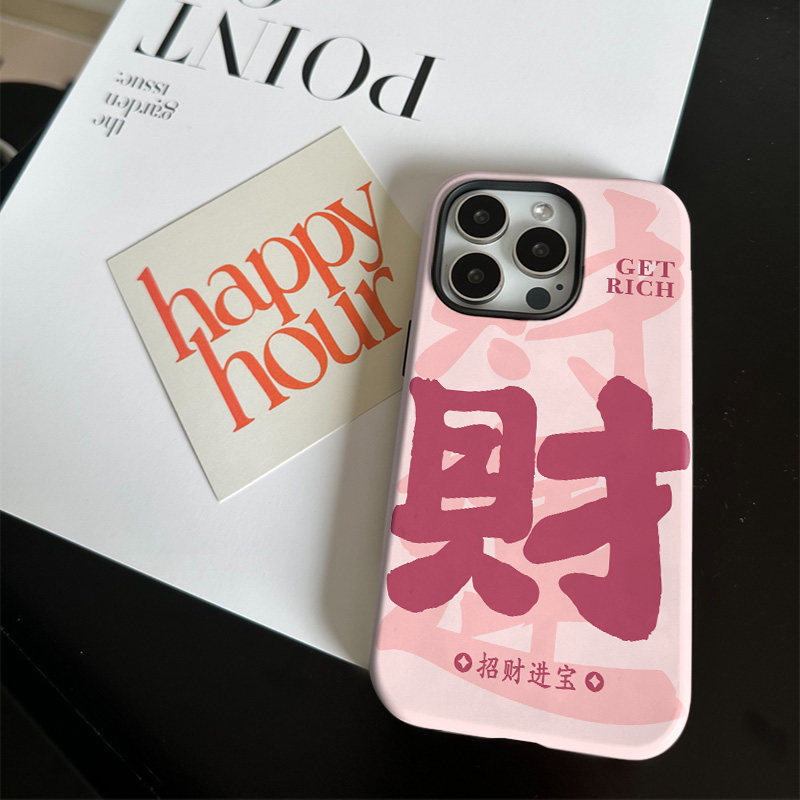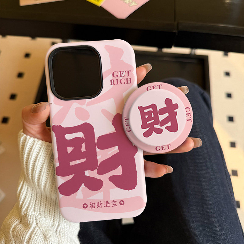 情侣招财进宝适用苹果17promax手机壳iphone16pro菲林磁吸支架个性华为P80小米15小众vivo防摔保护壳oppo国风 - Funke case