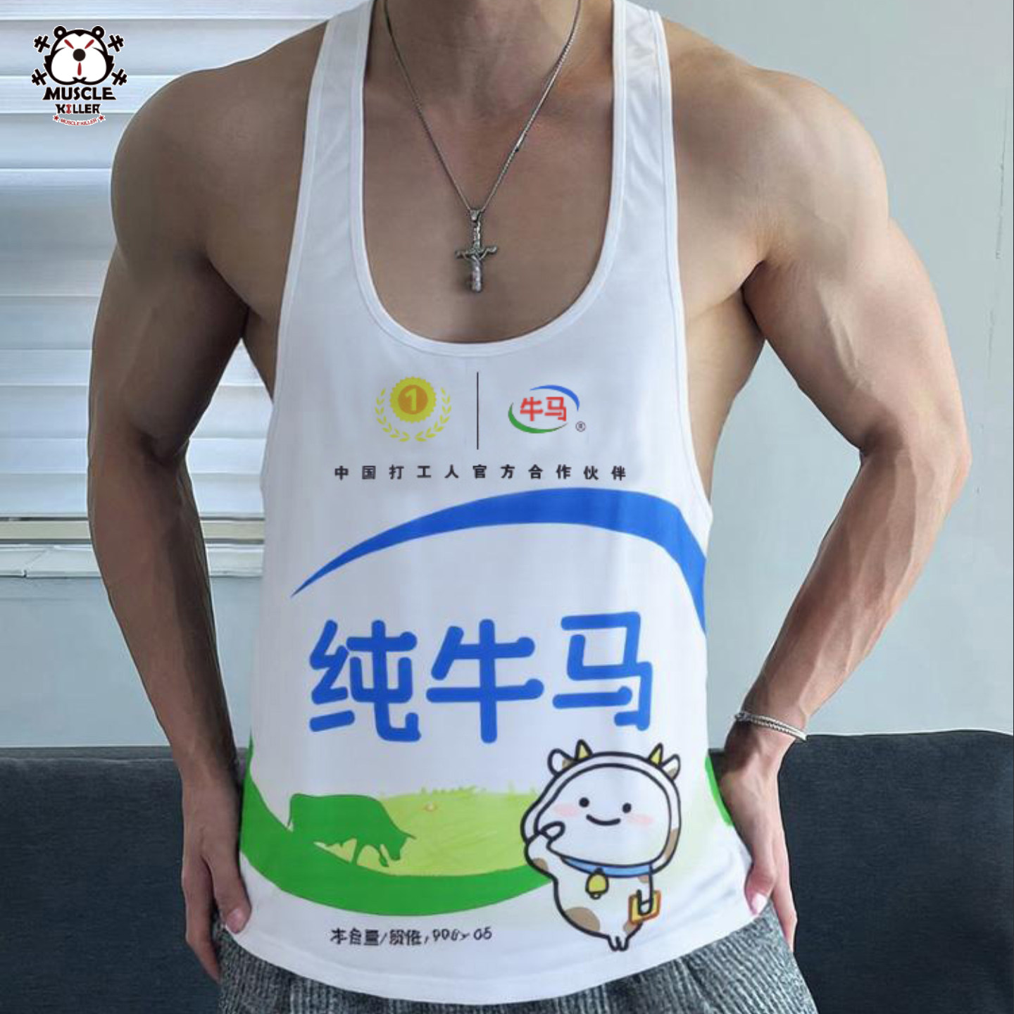 MK肌肉杀手健身房工字背心纯牛马个性白色卡通运动休闲跑步无袖 - 肌肉杀手MUSCLE KILLER
