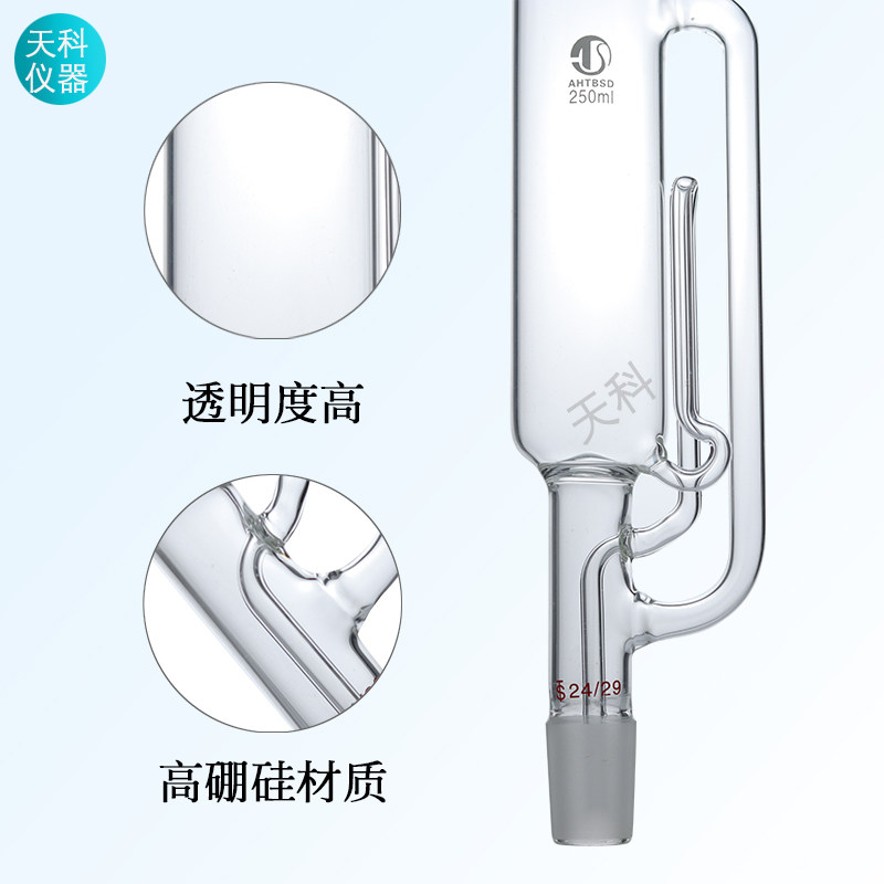 索氏提取器虹吸管150ml250mll500ml脂肪抽出器提取管脂肪抽出筒 - 天科实验玻璃仪器厂