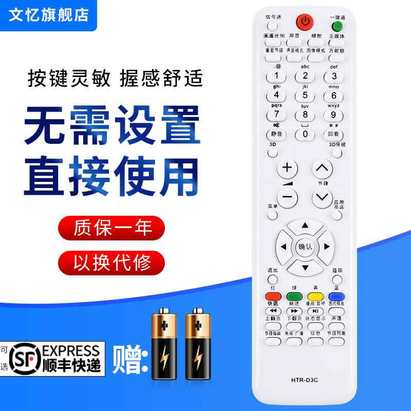 文忆适用于 海尔电视遥控器HTR-D3C LE50A900K LE42A700P3D LE32A390N U50H7 U42H7030 LE42 LE32A950P - 文忆旗舰店