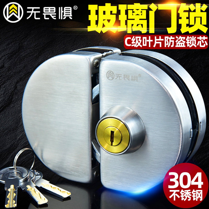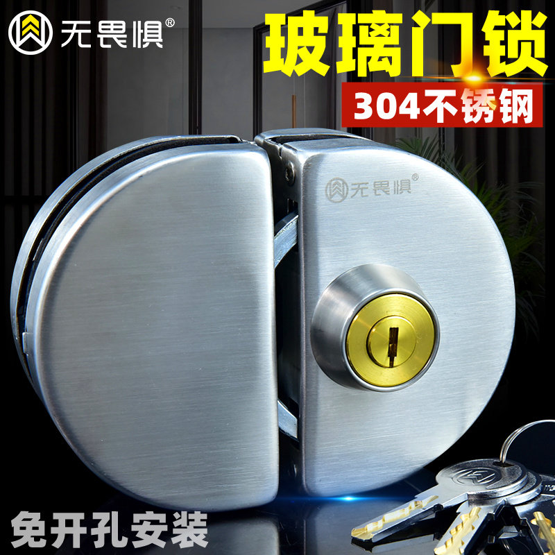无畏惧304玻璃门锁推拉双门免开孔店铺中央锁单门双开门锁商铺锁 - 无畏惧旗舰店