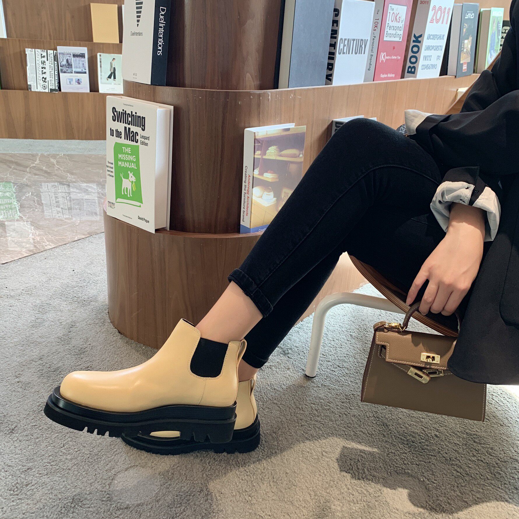 Inking Pot 彭姐新品切尔西短靴女真皮厚底及踝靴英伦风马丁靴潮 - Inking Pot 彭姐的鞋店