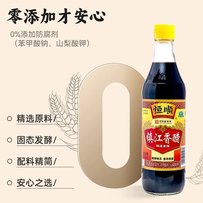 恒顺镇江香醋500ml新B香家用食用醋饺子炒菜凉拌官方授权陈醋调料 - 醉川味食品专营店