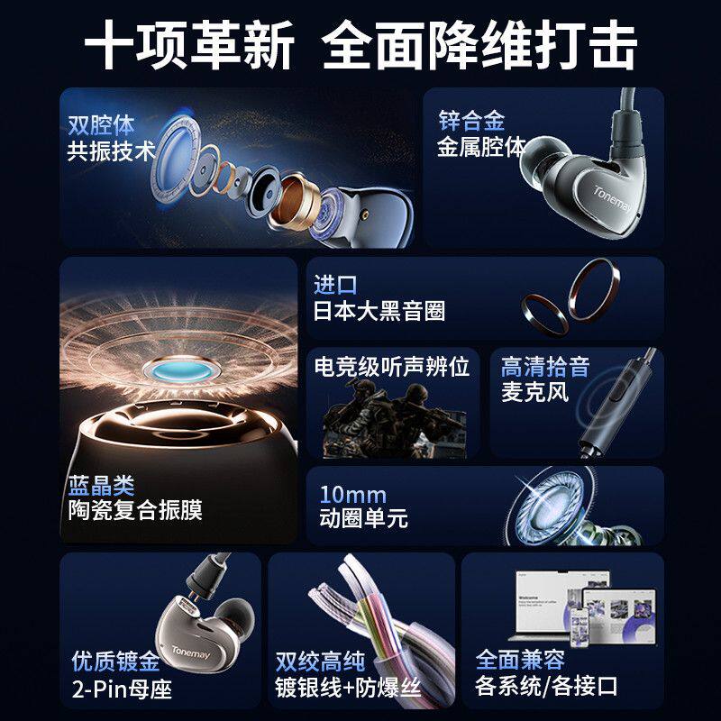 唐麦凌雲入耳式HiFi有线耳机电竞游戏专用3.5mm带麦手机电脑Typec - 米唐影音专营店