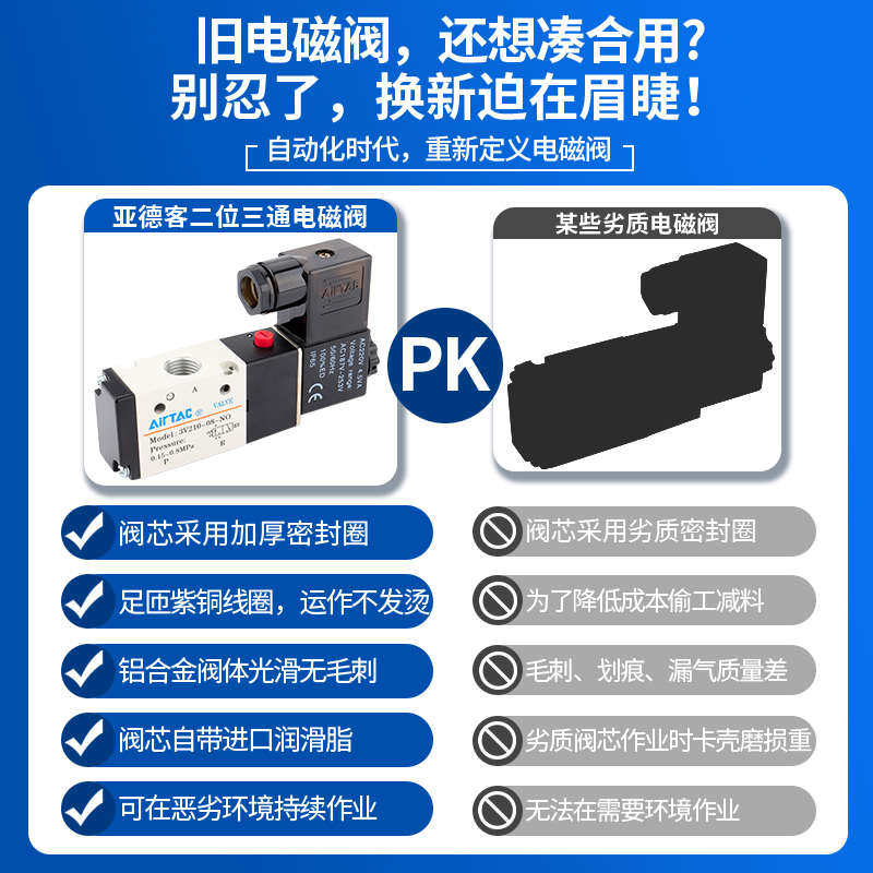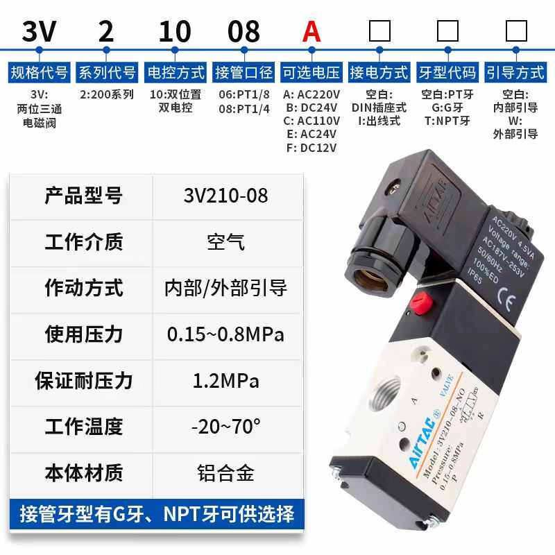 亚德客电磁阀3V210-083V310-10二位24v控制阀气阀220v换向阀三通 - 庭花百货官营店