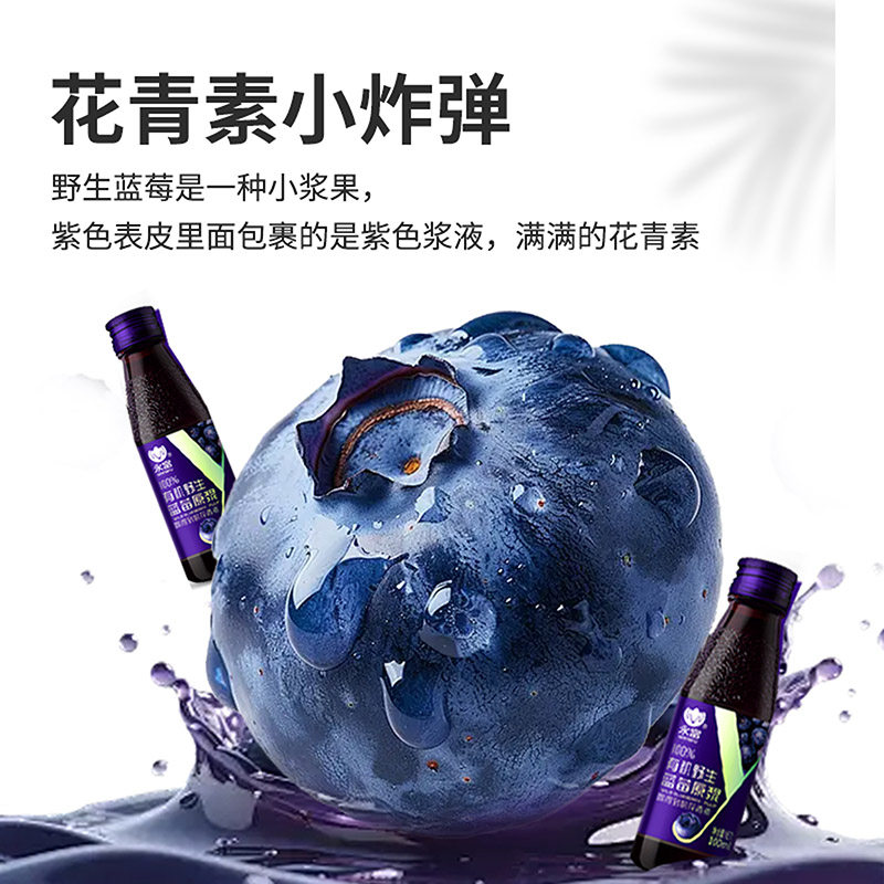 「花青素」永富100%大兴安岭有机野生蓝莓原浆100ml*8瓶 - 永富旗舰店