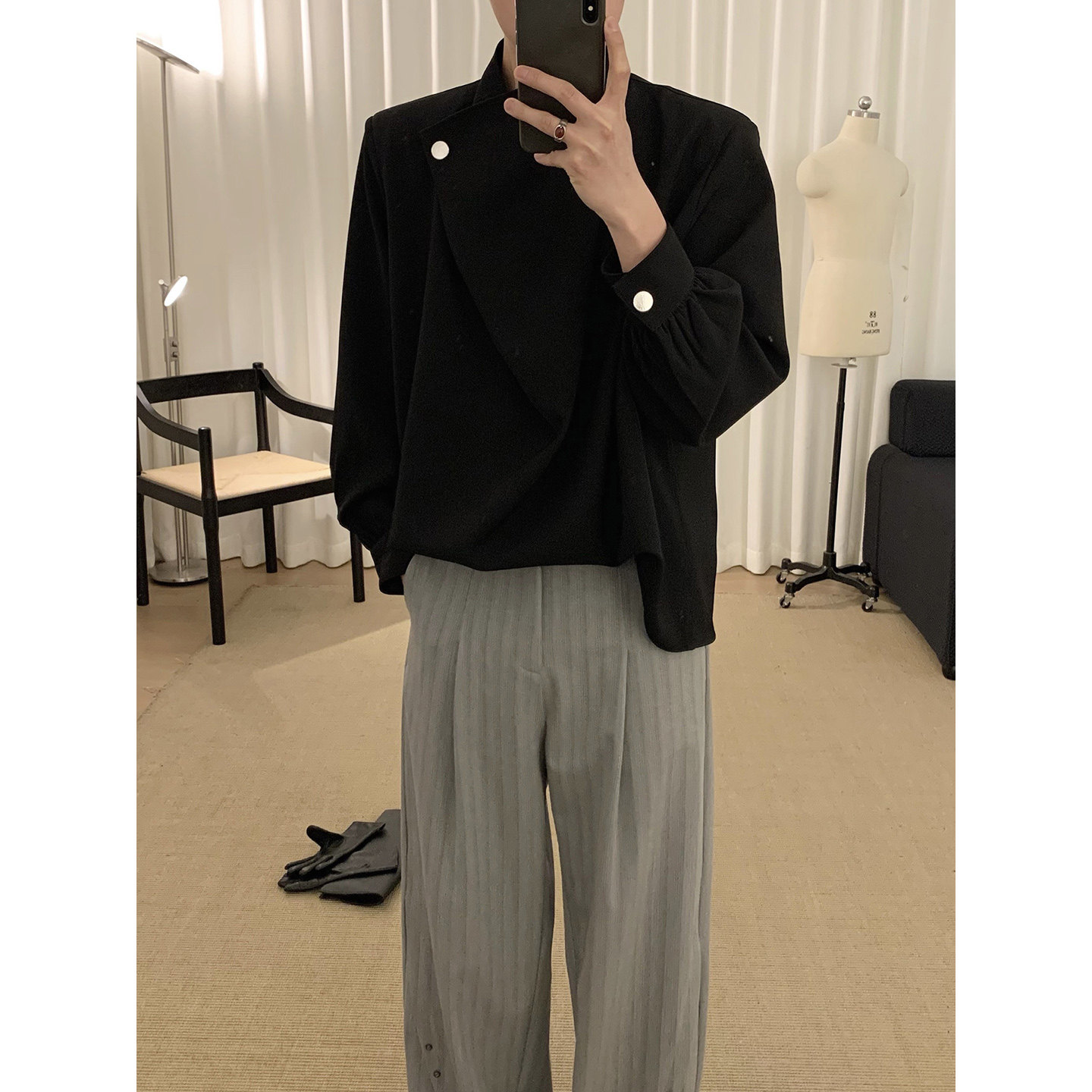 阿茶与阿古【暗黑折叠】不规则门襟衬衫男款高级感痞帅小众衬衣 - 阿茶与阿古