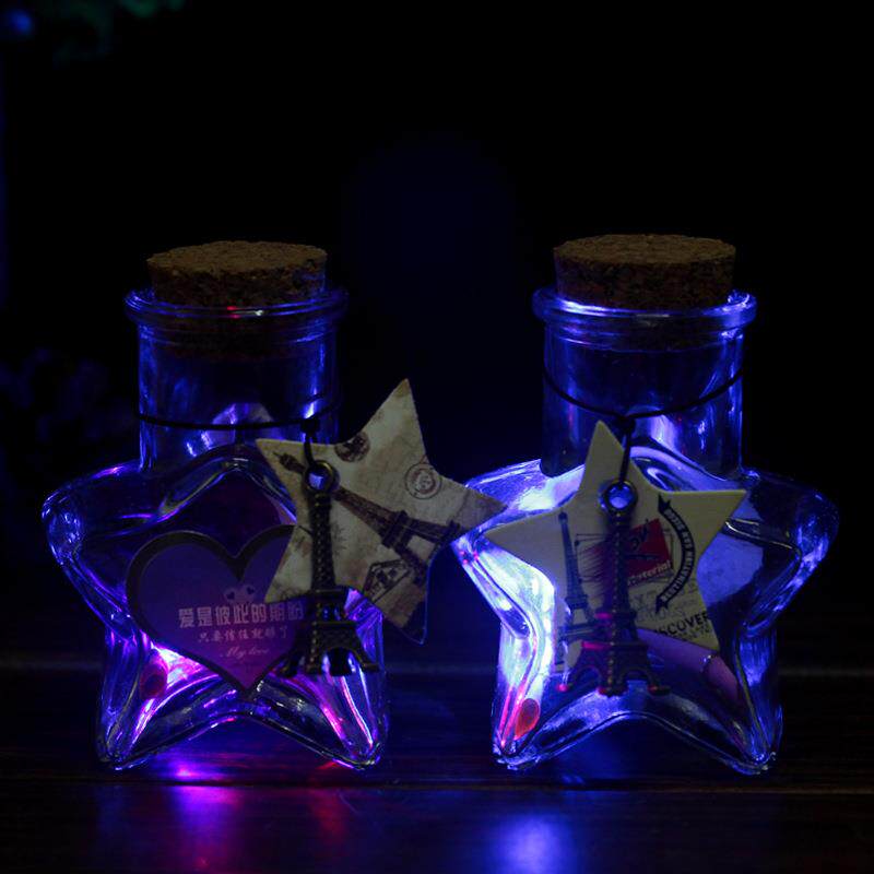 小五角星闪光许愿瓶 纪念友情创意玻璃发光摆件星星瓶愿望瓶礼物 - 风万里工厂店