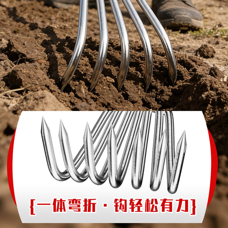 新一代加长柄不锈钢一体小耙子翻土松土种花除草神器园艺钉耙工具 - 辉伟工具