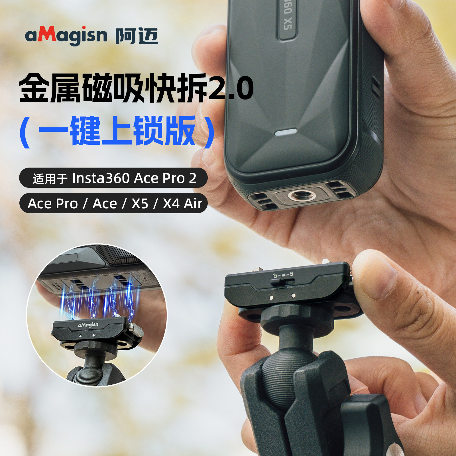 您的位置:安康生态农业开发平台  >   >  适用Insta360 AcePro/2/X5/X4 Air金属磁吸支架一键锁扣拓展底座