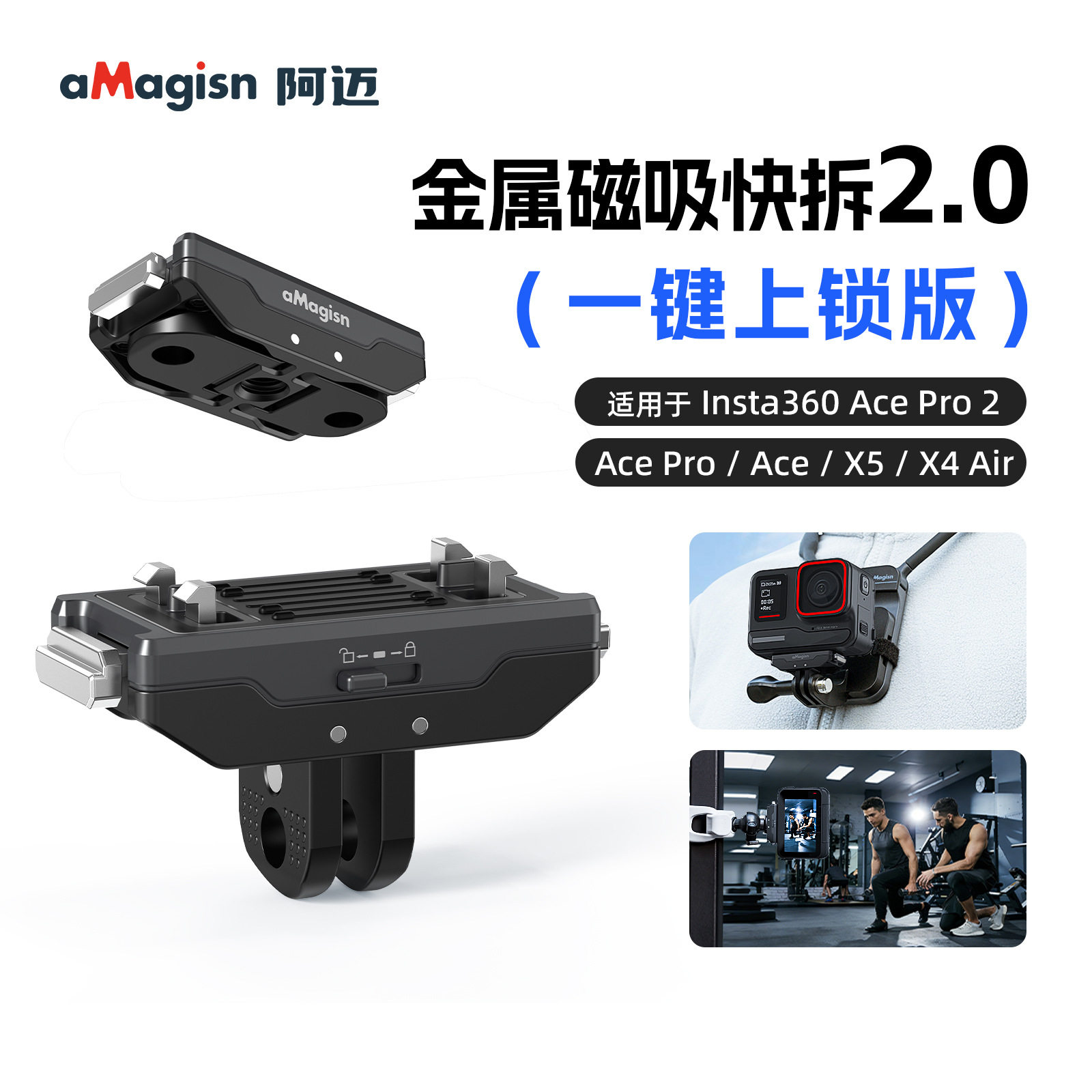 适用Insta360 AcePro/2/X5/X4 Air金属磁吸支架一键锁扣拓展底座 - 星遇航模科技