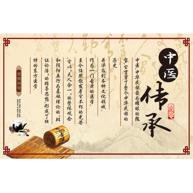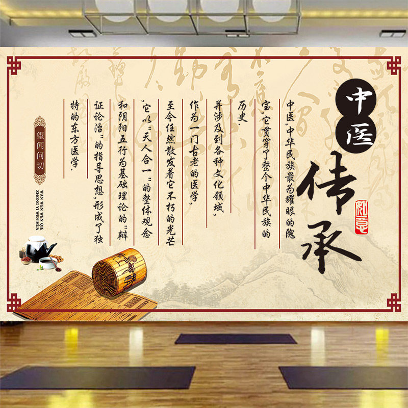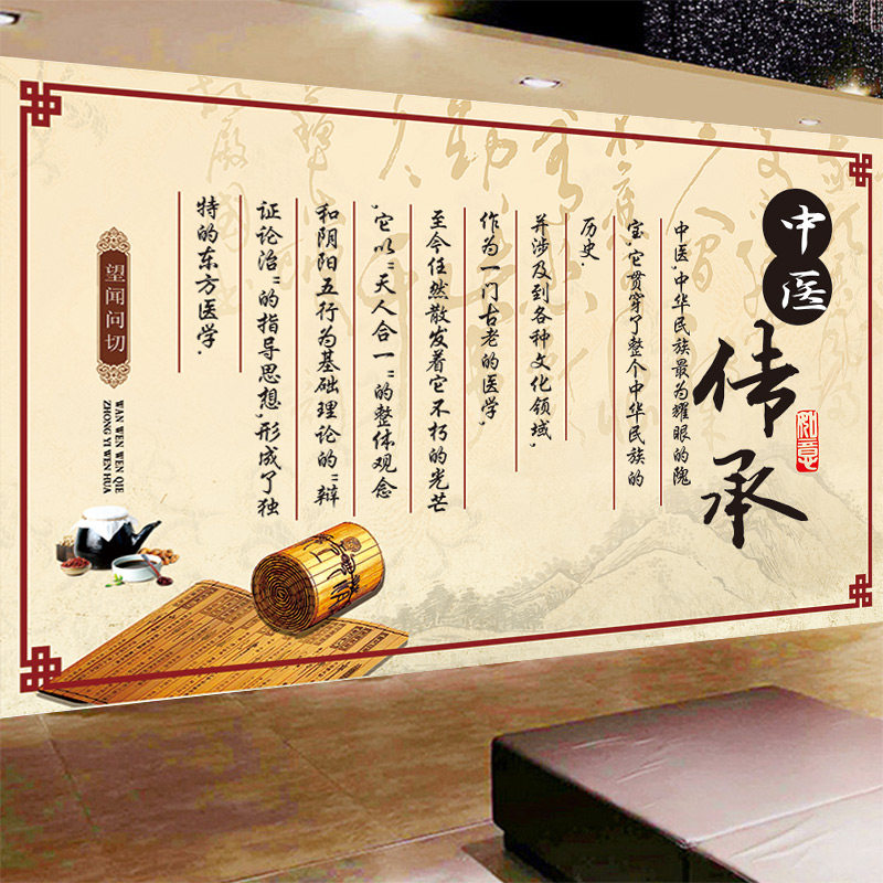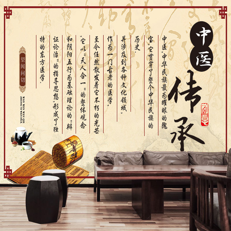 中医传承墙纸中医馆诊所医院背景墙装饰壁画中医望闻问切文化壁纸 - 海湖便利店