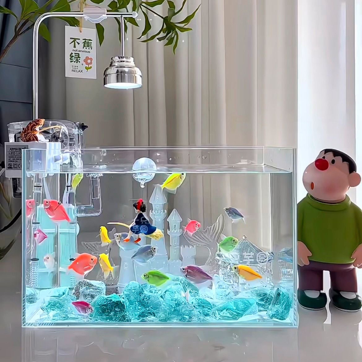 您的位置:安康生态农业开发平台  >   >  小红书同款/蓝水晶 蓝色海洋城堡旋转木马鱼缸造景微景观泰国斗鱼