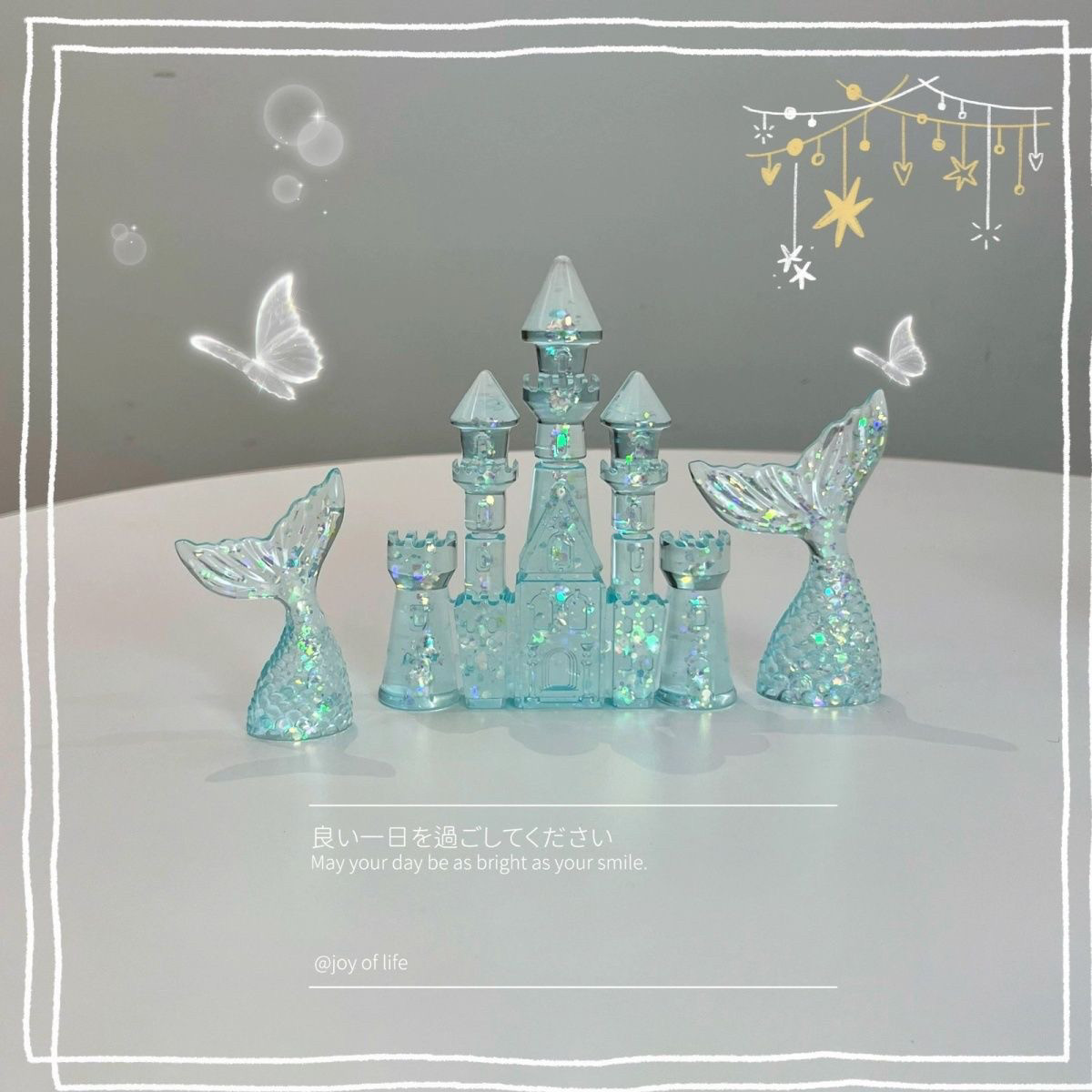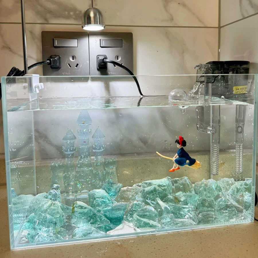 小红书同款/蓝水晶 蓝色海洋城堡旋转木马鱼缸造景微景观泰国斗鱼 - 鱼悦微景观