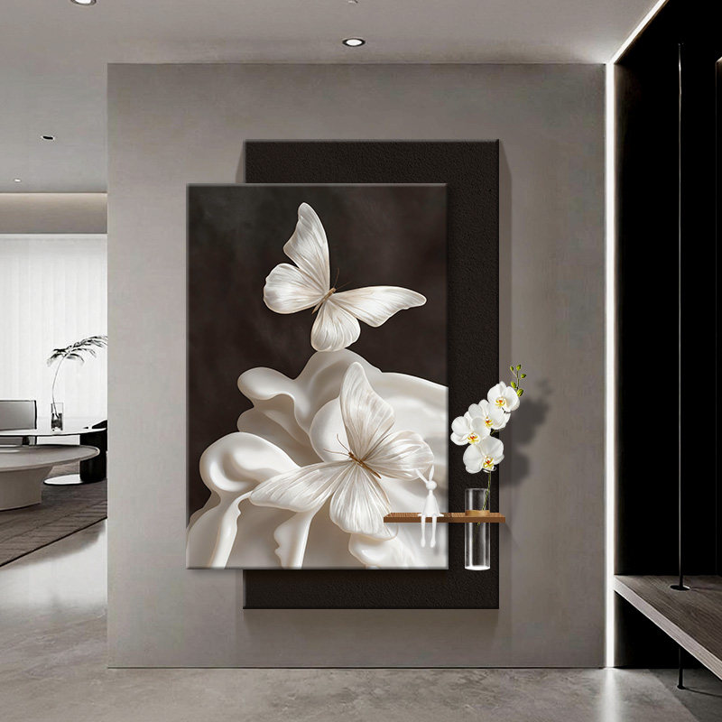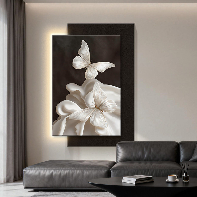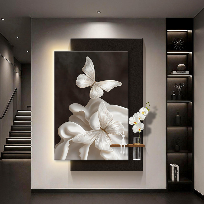 抽象艺术蝴蝶装饰画砂岩客厅挂画高级设计感入户玄关LED氛围灯画 - 芙林达旗舰店