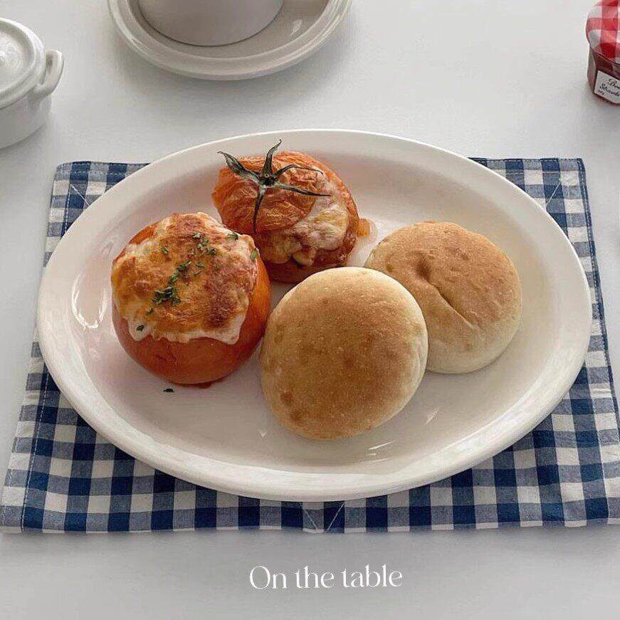 On the table - 乳白系列9.6寸窄边陶瓷椭圆盘 鱼盘 椭圆西餐盘 - 半婵娟影维傅专卖店