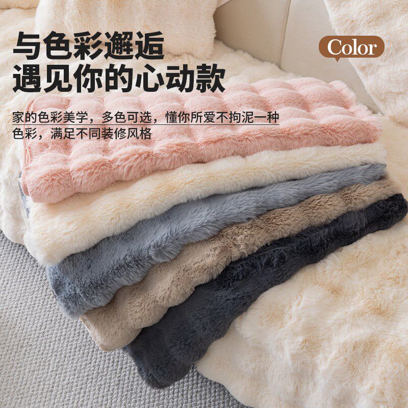 兔兔绒沙发垫冬季加厚毛绒防滑坐垫2024新款皮沙发V套罩秋冬盖布 - 花源园批发