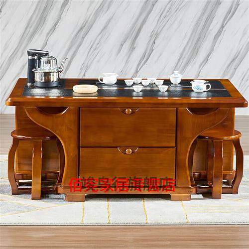 茶几餐桌两用茶几餐桌二单一实烧石火木茶几N椅子(合个椅子)不含 - 优锦居商城