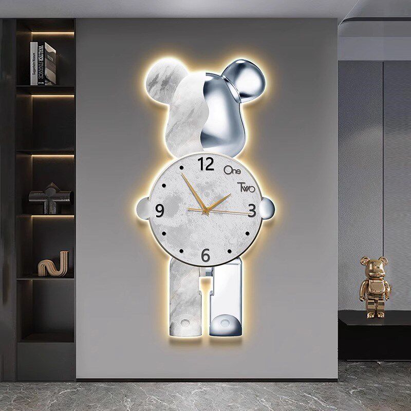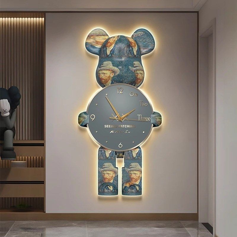 带灯挂钟暴力熊装饰画LED餐厅客厅玄关卧室静音钟表壁灯挂画灯画 - 笔峰坊商城的小店29