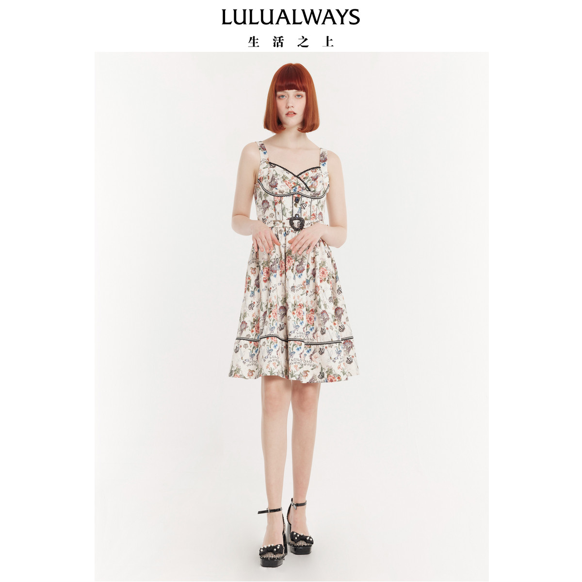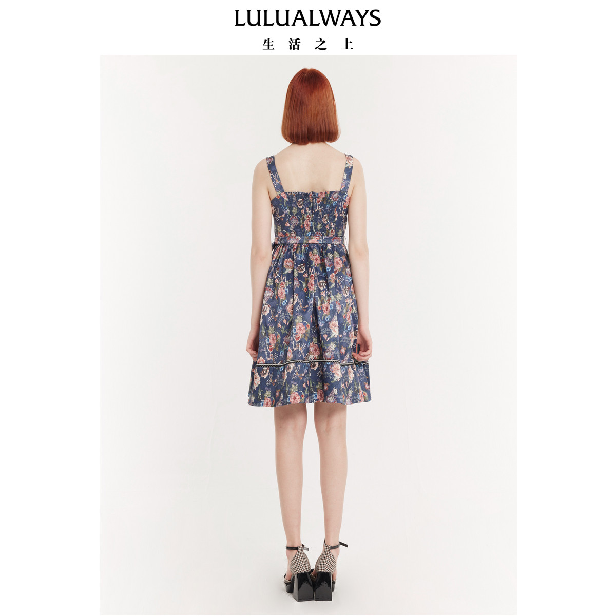 LULUALWAYS女士优雅温柔印花中长款吊带连衣裙LPB509K - 银泰百货旗舰店