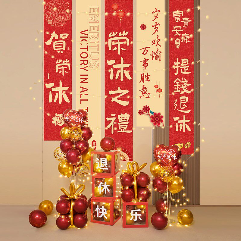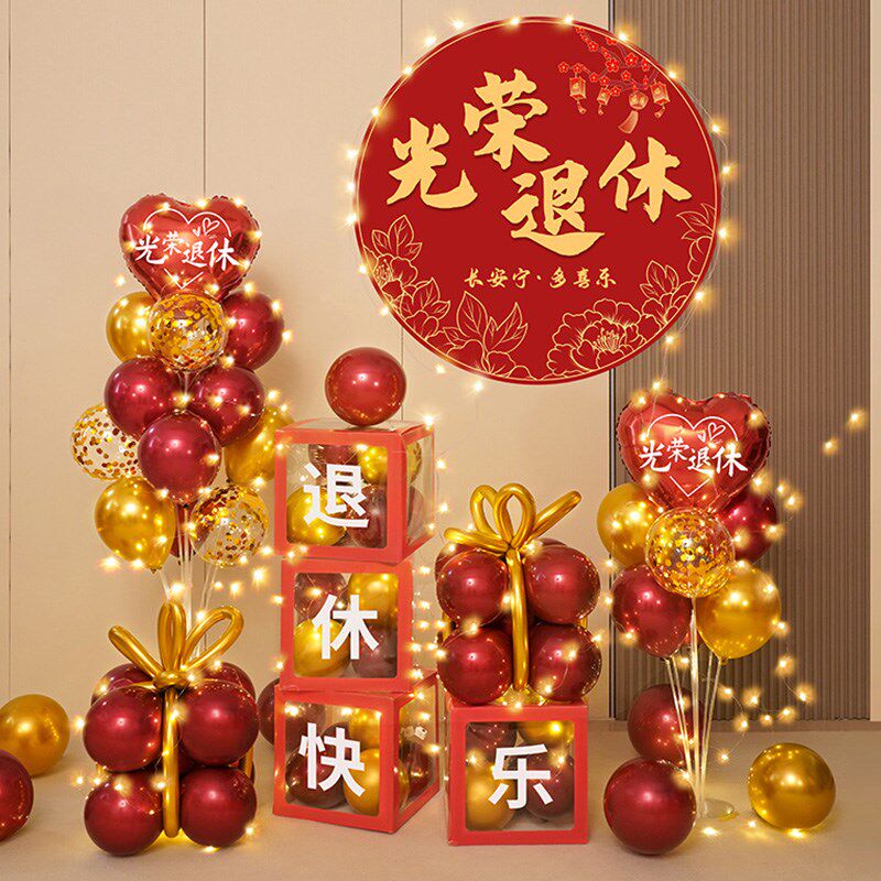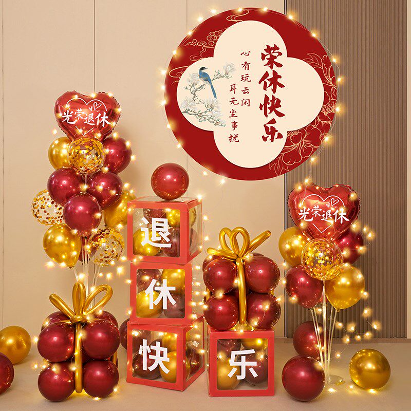 教师光荣退休仪式感布置男士海报场景气球女士氛围欢送会装饰背景 - 湖泊鸥影店