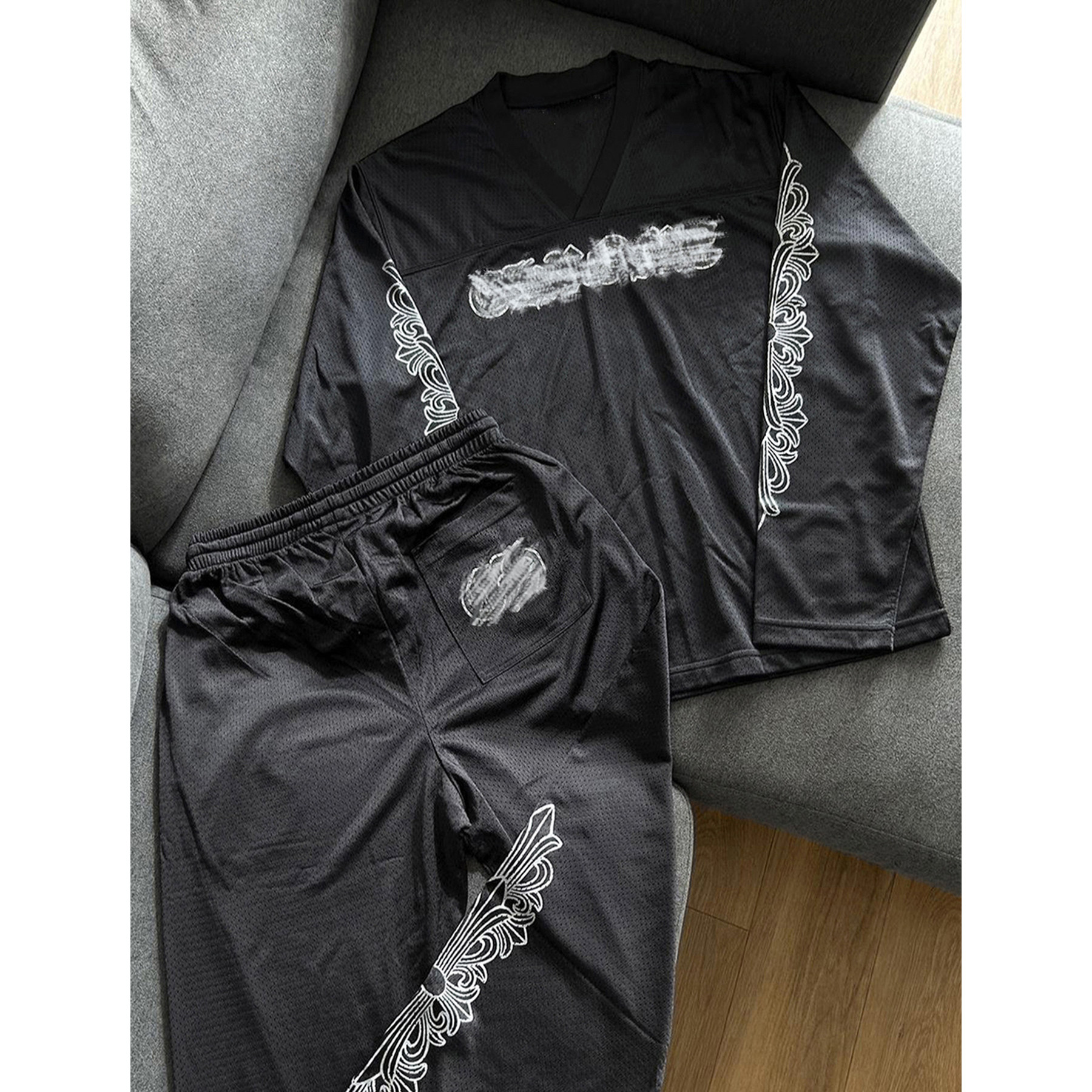 (现货)自主梵文网眼布冰球服球衣运动长裤套装 短裤 男女同款 - Runaway Baby