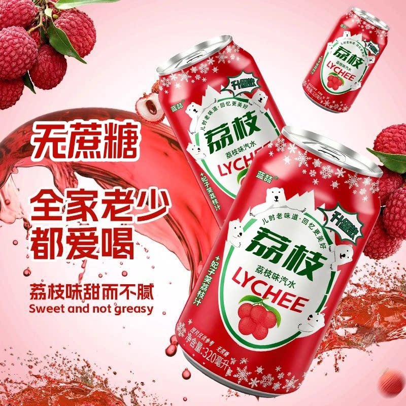荔枝汽水果味饮料气泡水罐装夏日冰镇解腻清爽休闲解渴年货好礼 - 挥洒星光
