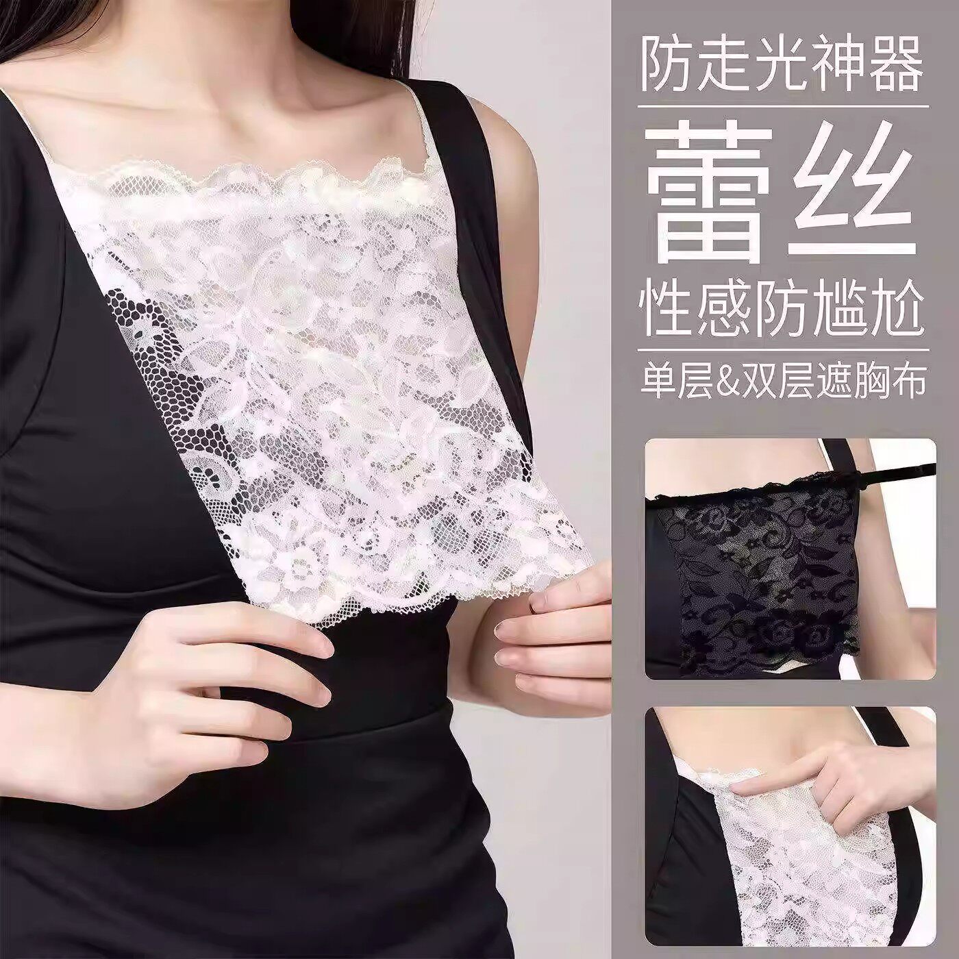 V领防走光神器一片式抹胸女蕾丝性感打底无痕内衣遮胸布胸挡夏季 - 三木成林百货店