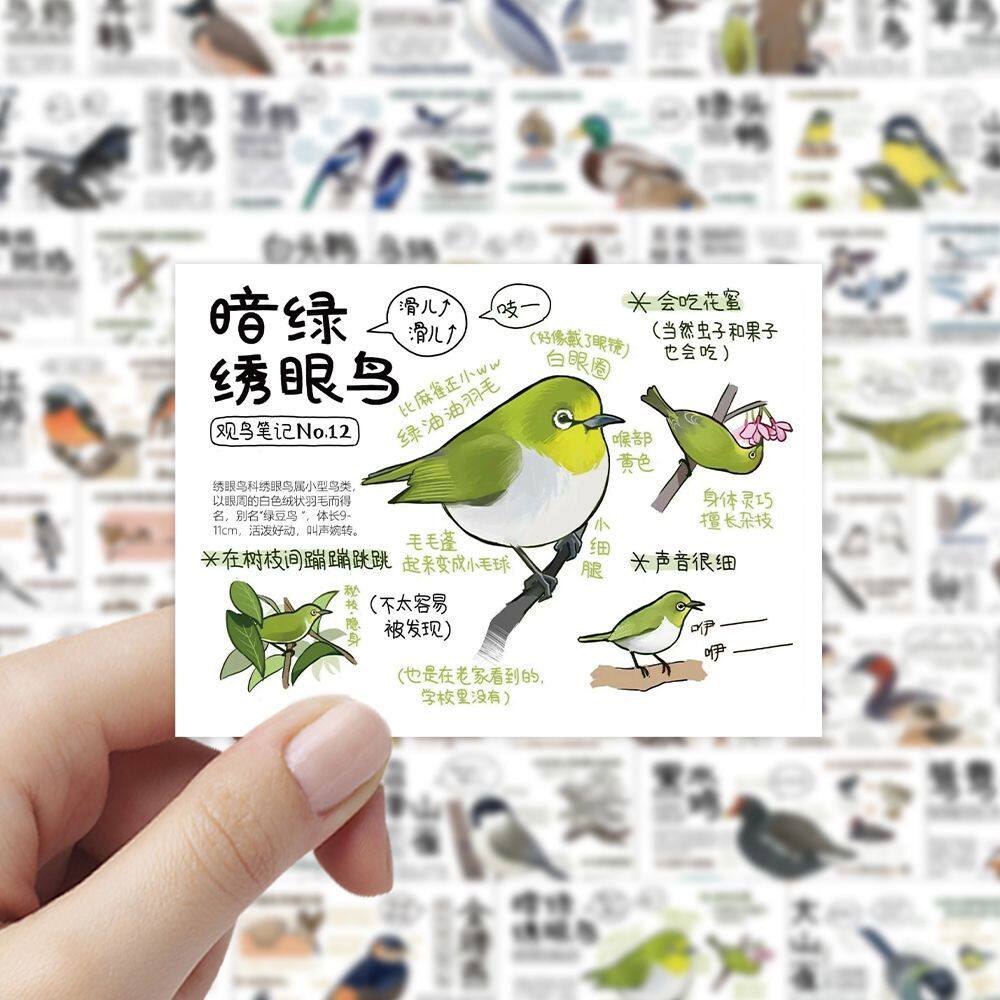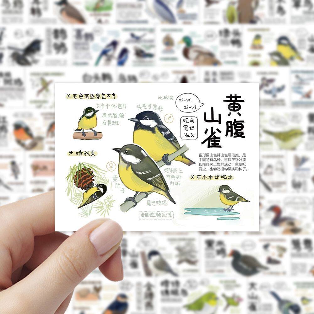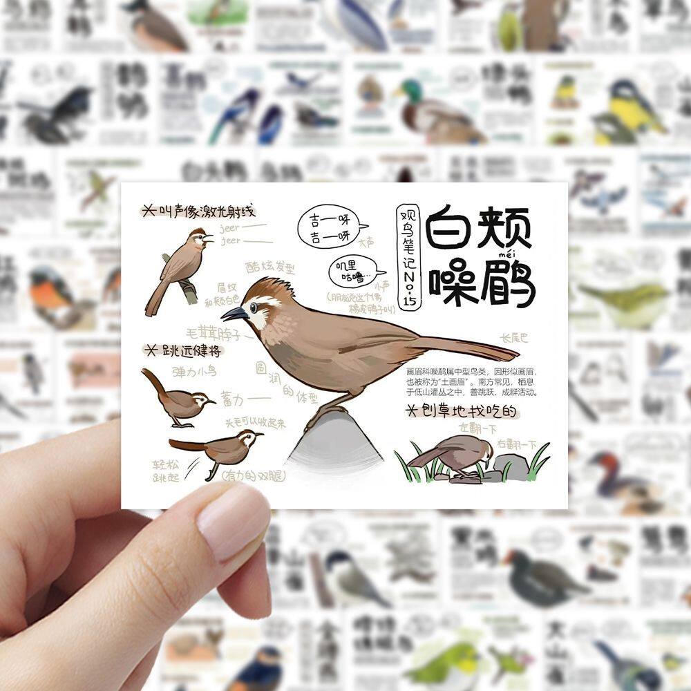 108张鸟类图鉴贴纸小鸟周边学习认知鸟类之时装饰手账手机电脑DIY - 可爱泡泡文化