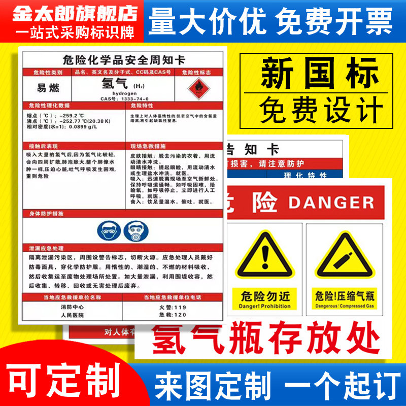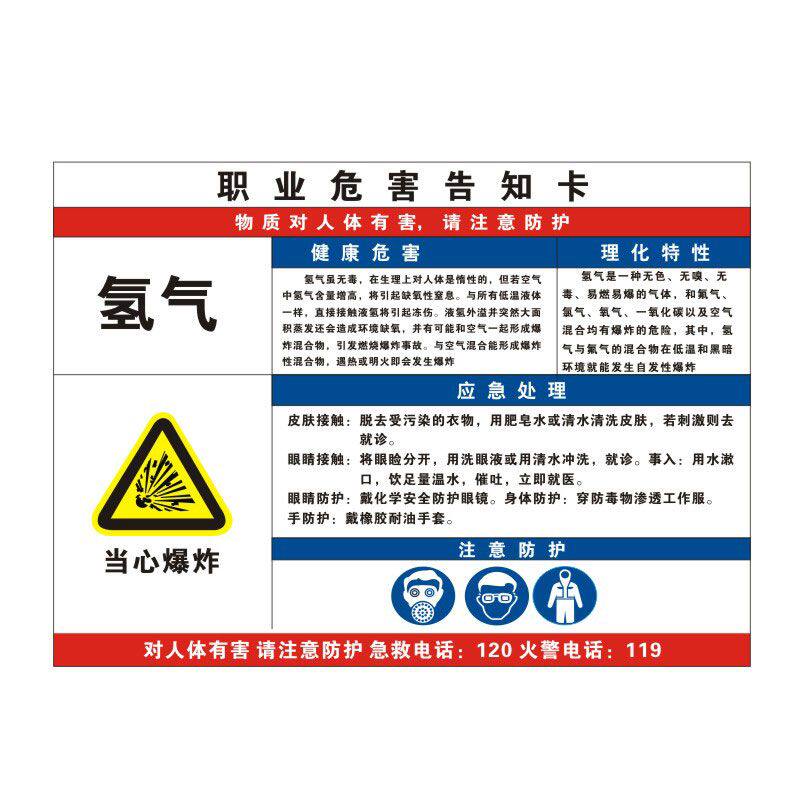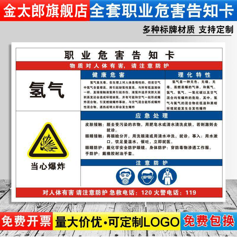 氢气职业病危害告知卡危险化学品安全周知卡氧氩氮气混合气体MSDS气瓶存放处风险点标识标志警示牌提示定制QT - 金太郎旗舰店