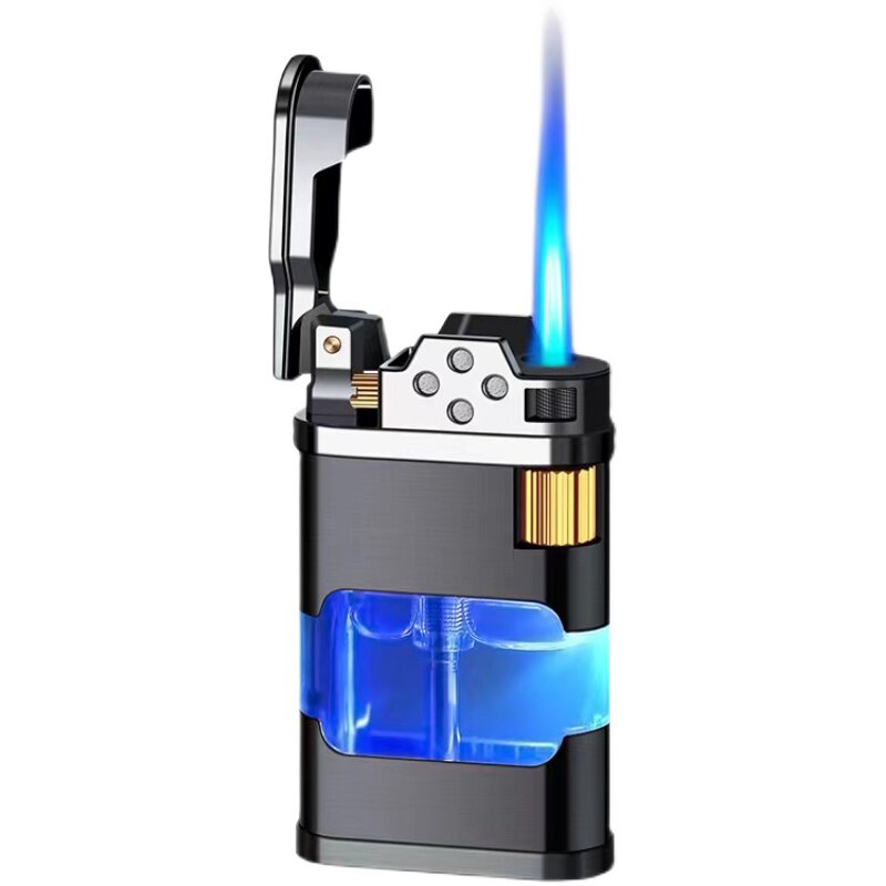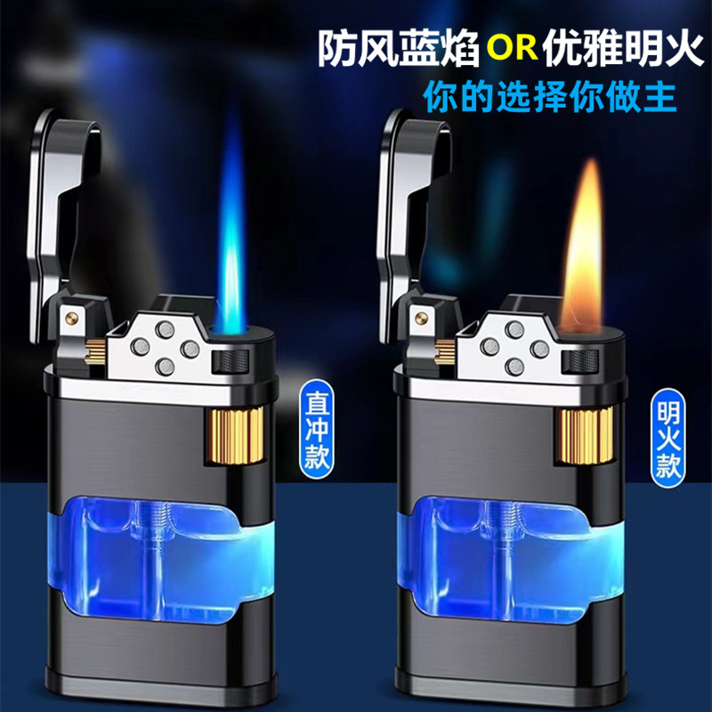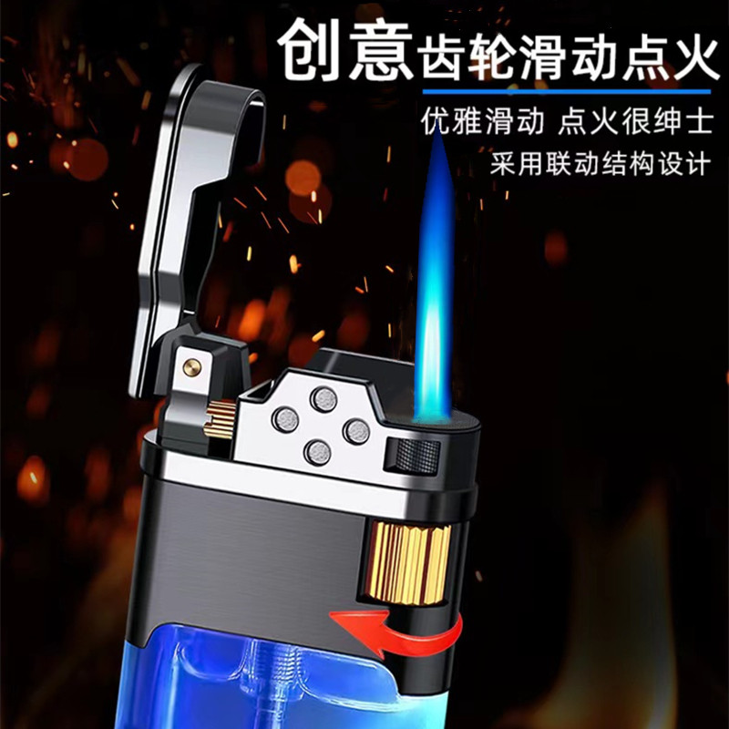 砂轮充气防风打火机透明仓带灯创意侧滑轮火石蓝焰个性刻字送男友 - 时尚潮流精品烟具