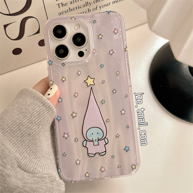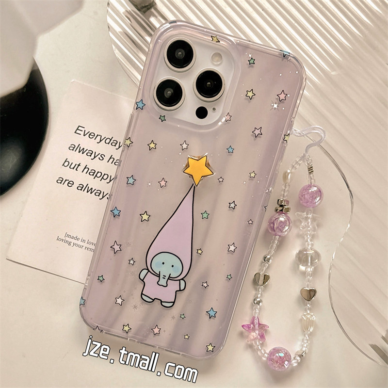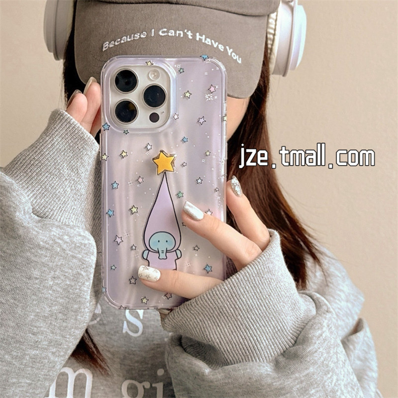 韩系ins镭射旋转星星长帽小象挂链适用苹果15手机壳iphone16ProMax新款15promax少女13可爱16pro全包14保护套 - jze旗舰店