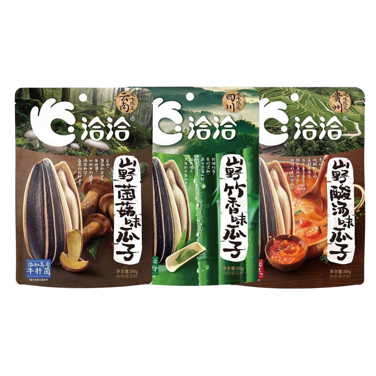洽洽88g瓜子山野系列酸汤味/菌菇味/竹香味风味限定零食 临期食品 - 哆哆零食 裸价临期特卖 进口食品折扣超市