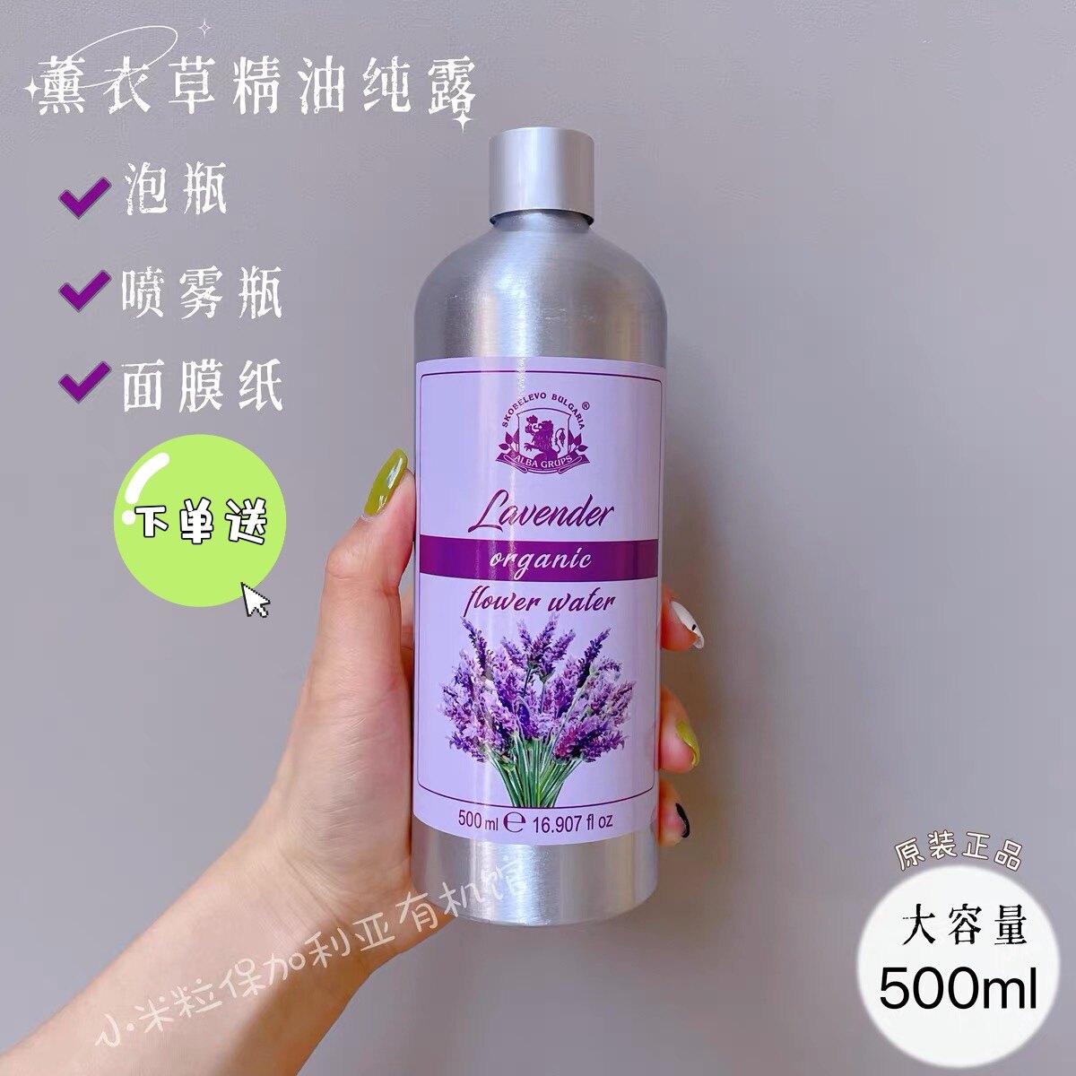 现货 薰衣草精油有机纯露500ml 保加利亚ALBA GRUPS原装 补水 - 小米粒保加利亚有机馆