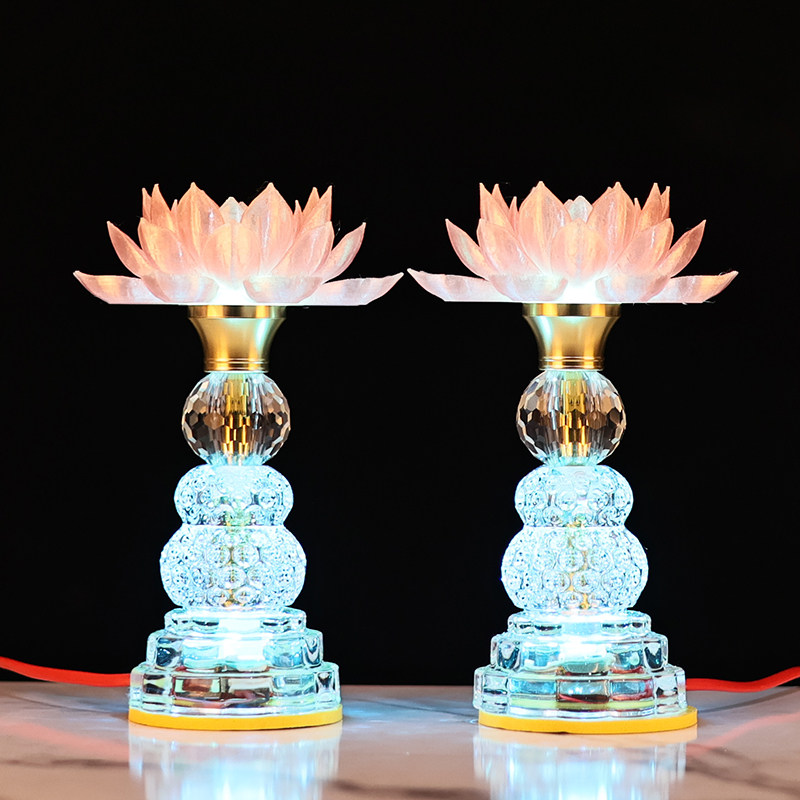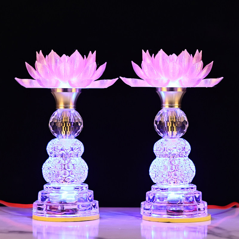 LED水晶玻璃莲花灯七彩佛前供灯佛台观音佛灯财神佛堂照明灯电 - 聚缘阁工艺品