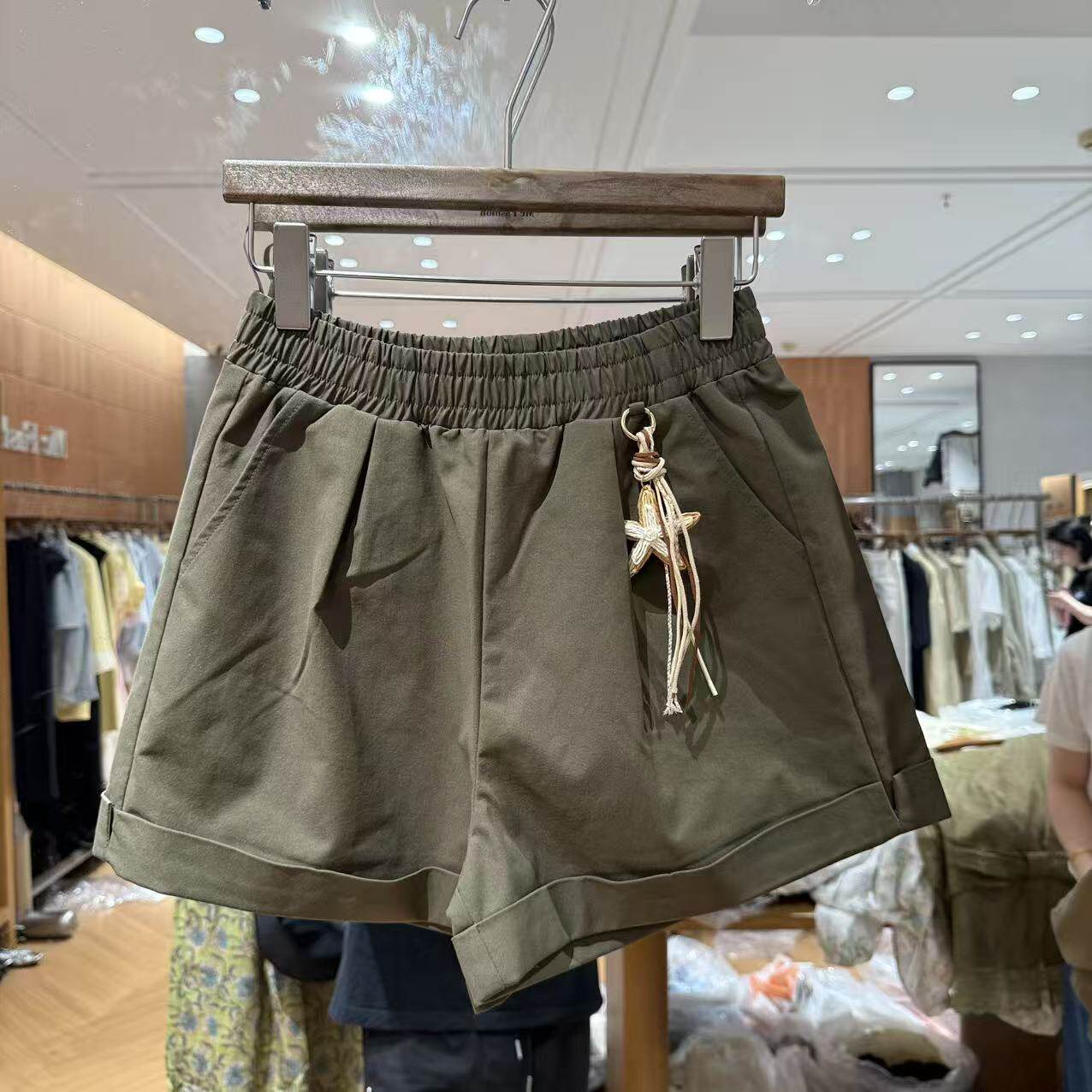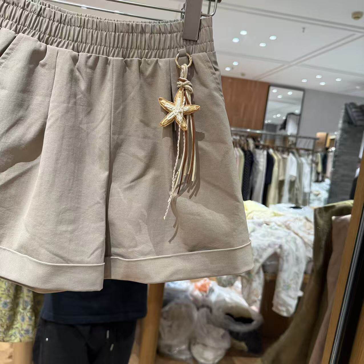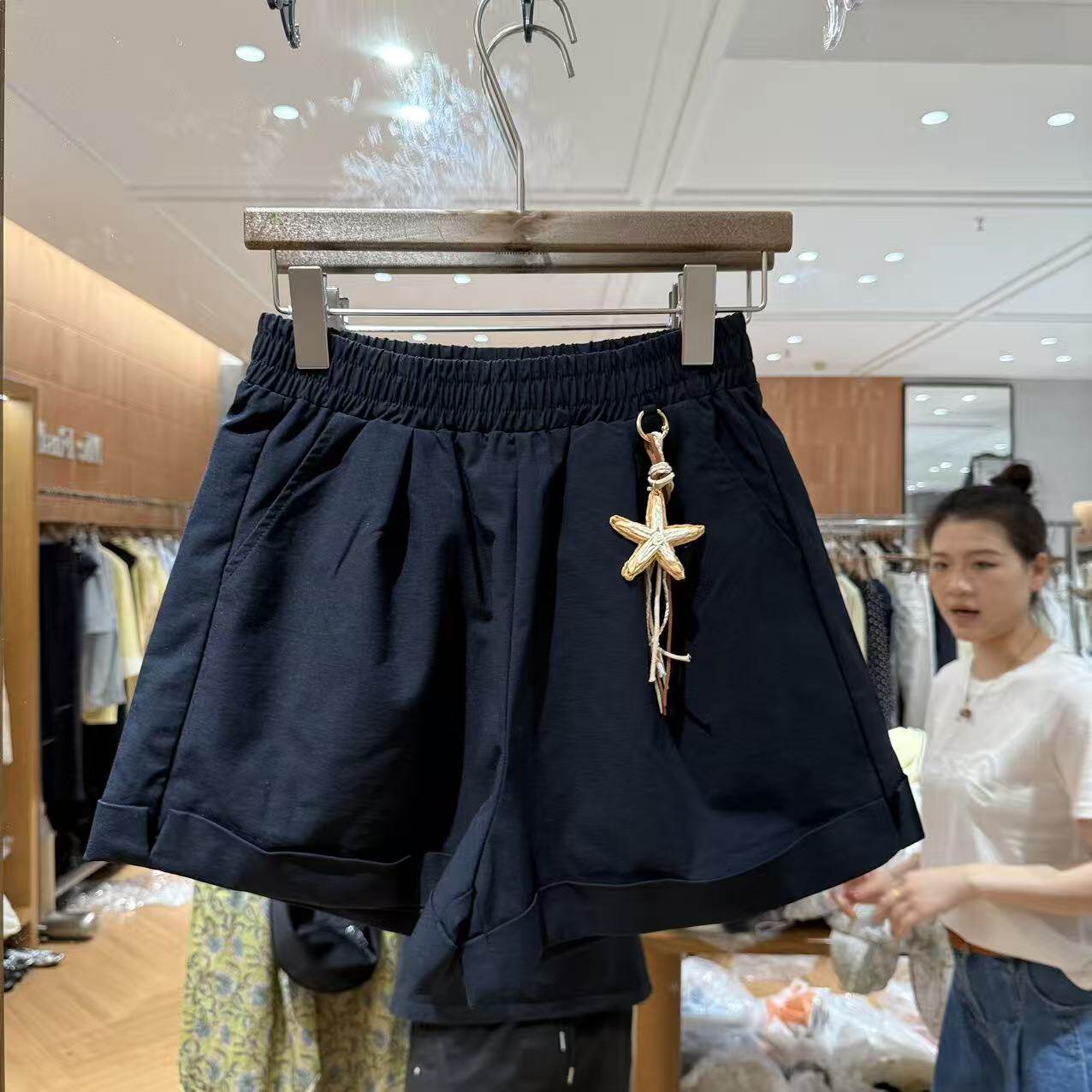 欧洲站2026夏新欧货褶皱松紧腰洋气星星挂坠卷边百搭休闲短裤6402 - 曼曼家高端女装档口 招代理