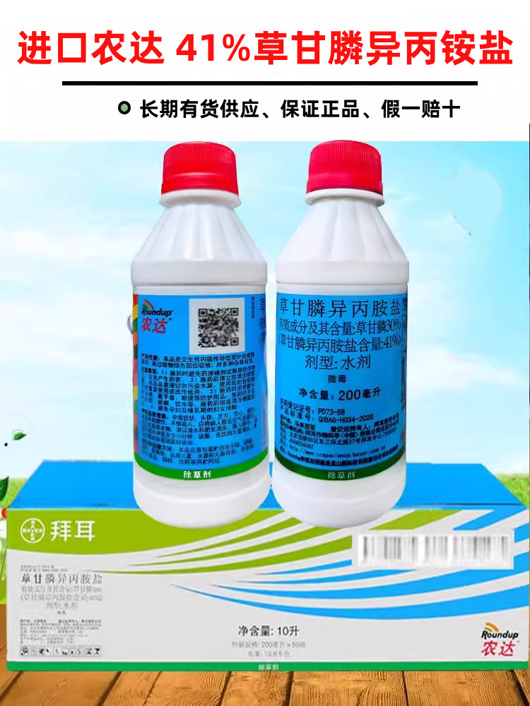 您的位置:安康生态农业开发平台  >   >  农达除草剂孟山都41%草甘膦异丙铵盐进口美国草甘磷烂根农药正品