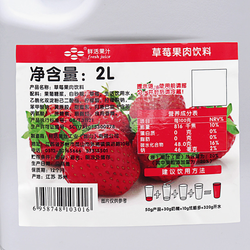 鲜活草莓果泥 浓缩浓浆 2L 鲜活果泥 果酱 果汁沙冰酱 奶茶原料 - 初馨奶茶坊