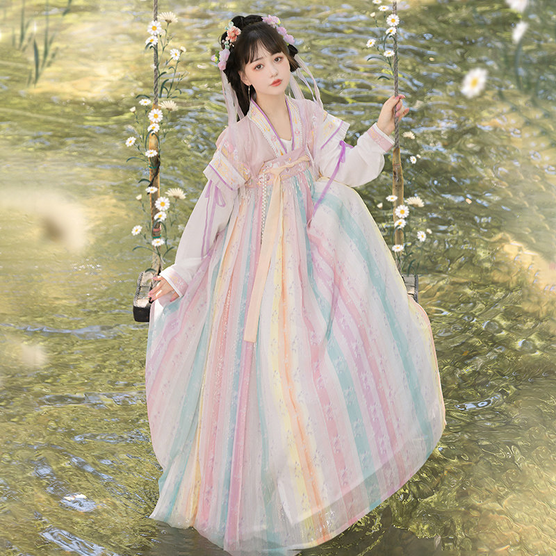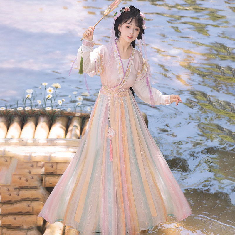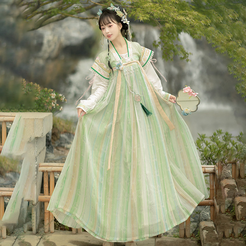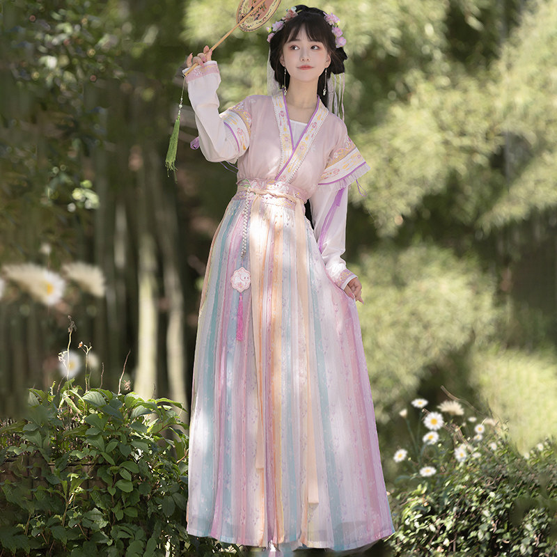 花小衣原创汉服女【绘廊春】唐褙子褶裙齐腰齐胸两穿日常春夏款 - 花小衣旗舰店