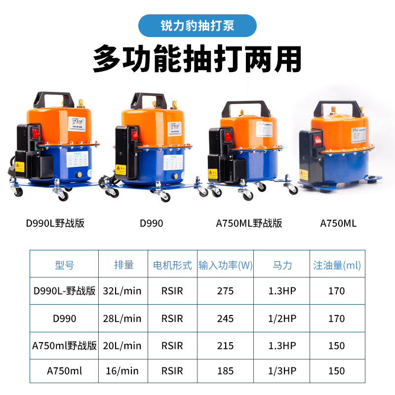 锐力豹汽车空调抽真空泵冰箱维修工具轮胎打气冷媒加注抽打两用泵 - 亿元制冷