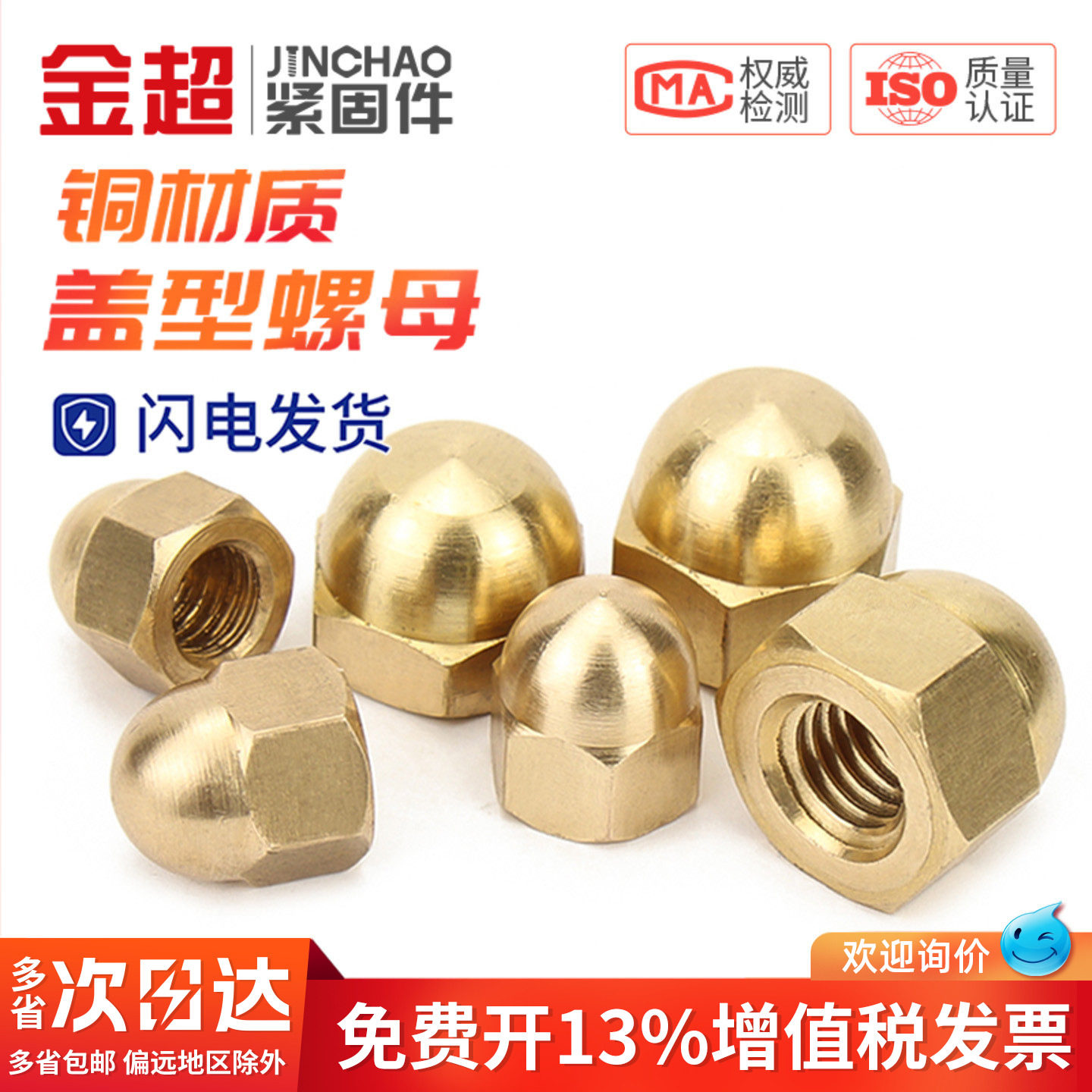 金超盖形螺母铜家用装饰帽铜盖母铜盖型螺帽GB923 M3M4M5M6M8-M20 - 金超官方旗舰店